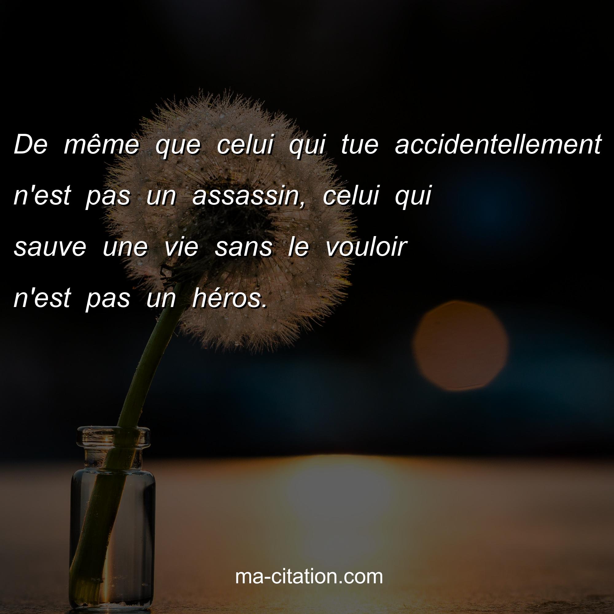 Citation sur la vie :De même que celui qui tue accidentellement n'est pas un assassin, celui qui sauve une vie sans le vouloir n'est pas un héros.