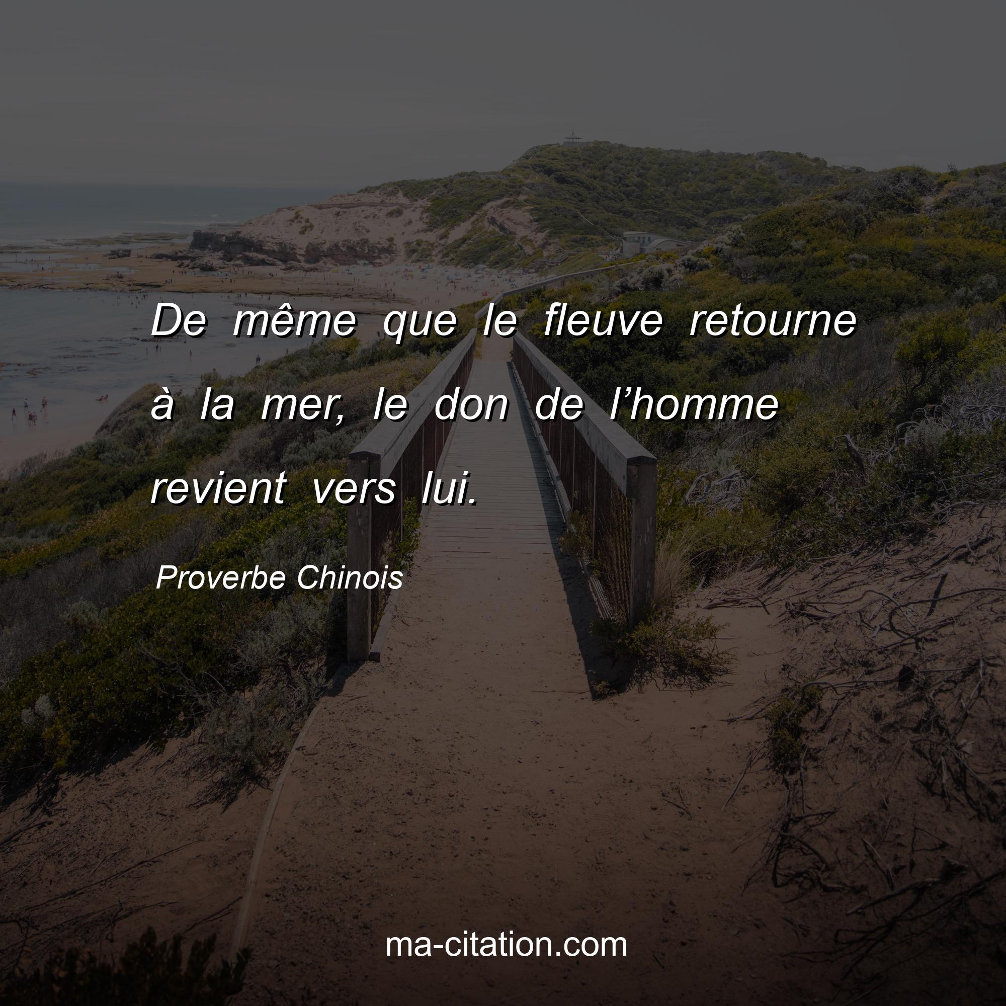 Proverbe Chinois sur la vie :De même que le fleuve retourne à la mer, le don de l’homme revient vers lui.