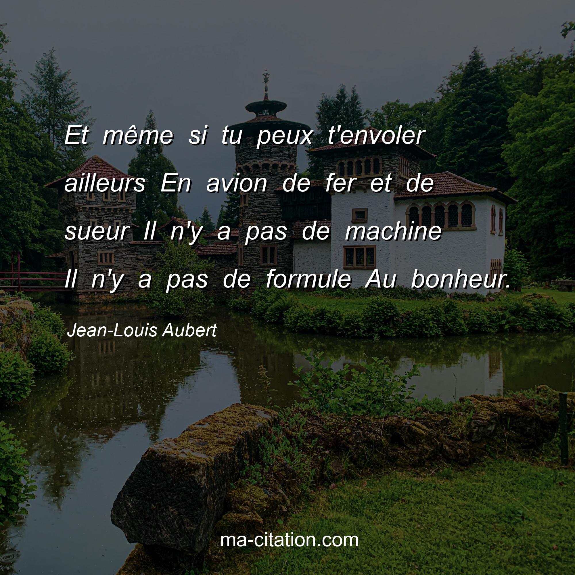 Citation sur la vie de Jean-Louis Aubert :Et même si tu peux t'envoler ailleurs En avion de fer et de sueur Il n'y a pas de machine Il n'y a pas de formule Au bonheur.