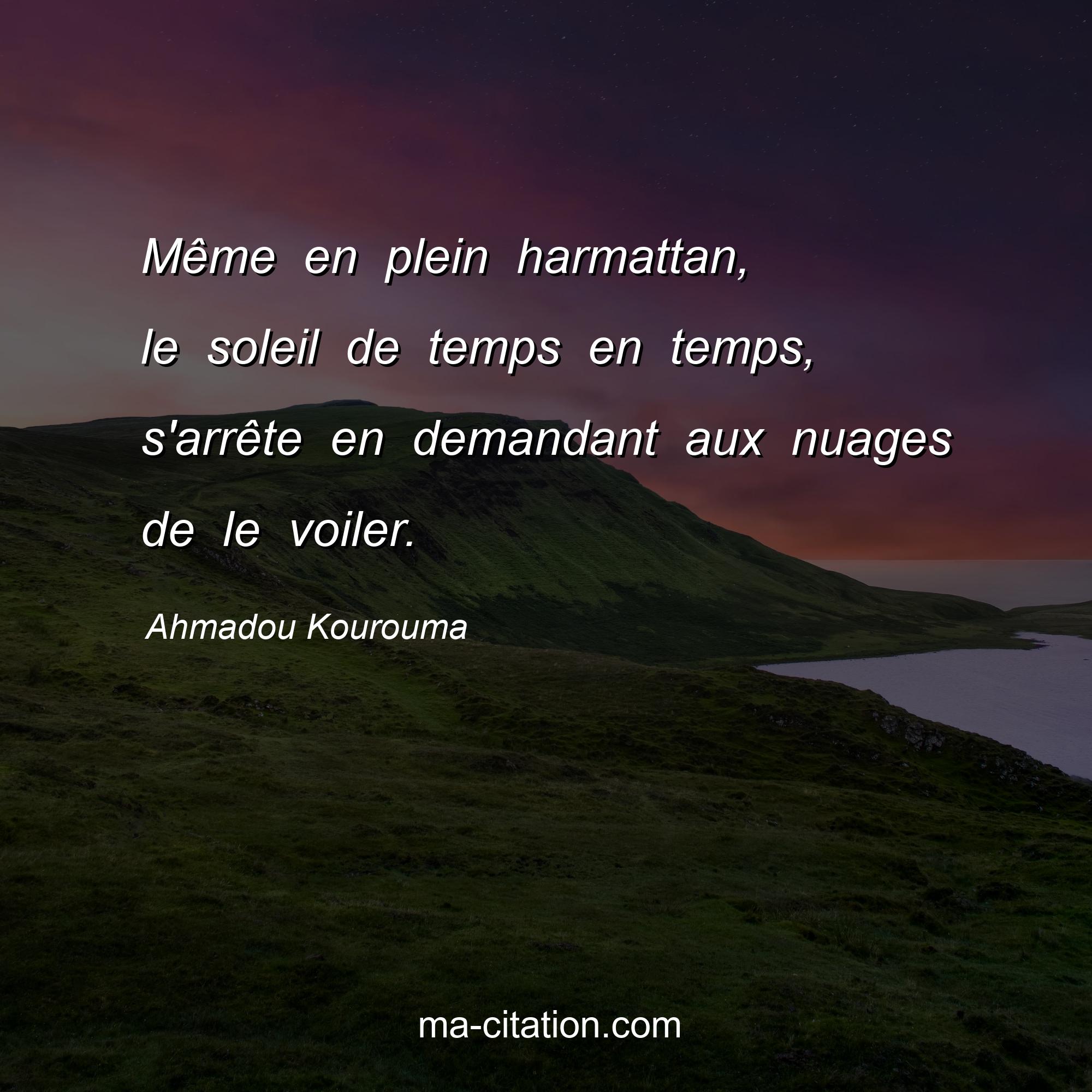 Citation sur la vie d'Ahmadou Kourouma :Même en plein harmattan, le soleil de temps en temps, s'arrête en demandant aux nuages de le voiler.