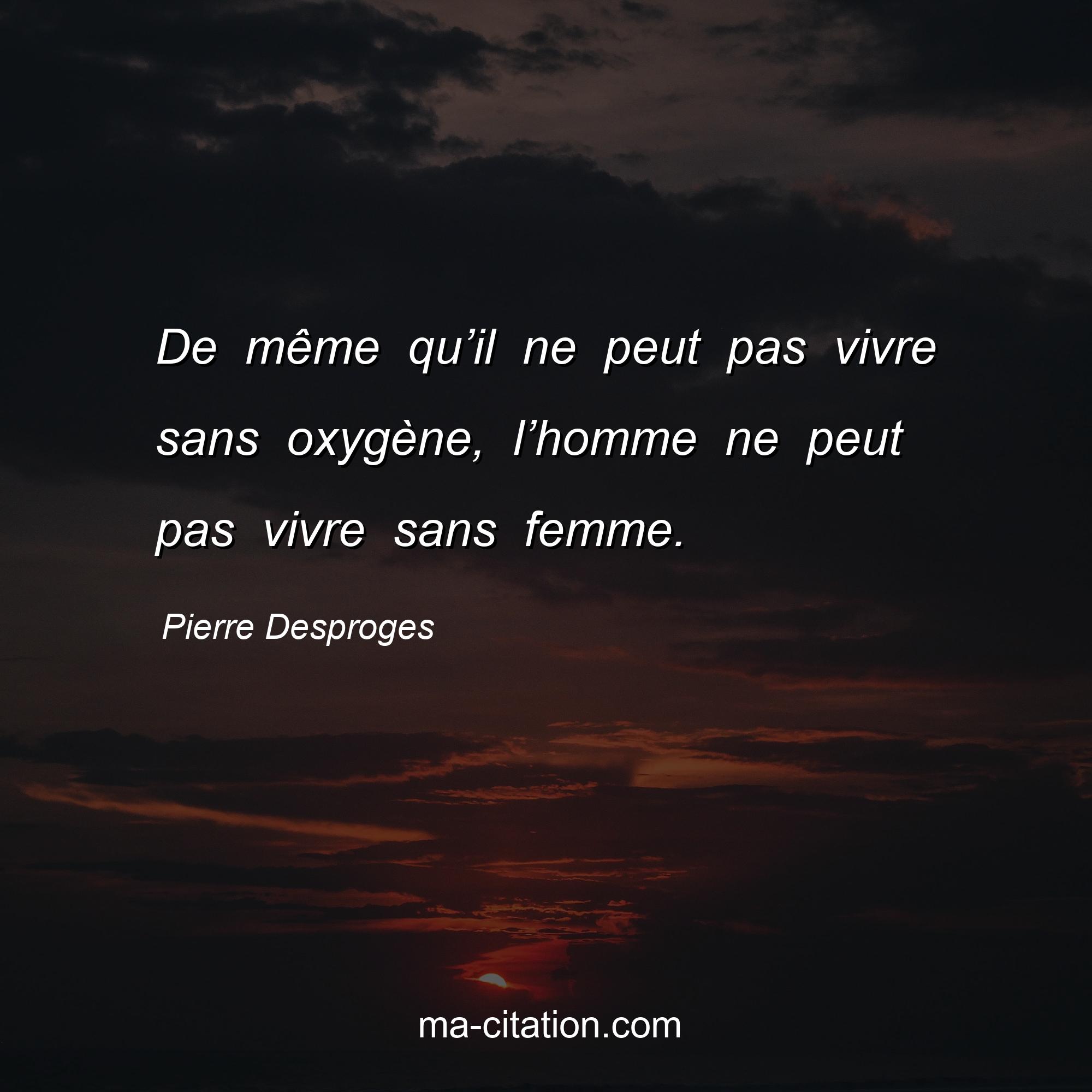 Citation sur la vie de Pierre Desproges :De même qu’il ne peut pas vivre sans oxygène, l’homme ne peut pas vivre sans femme.