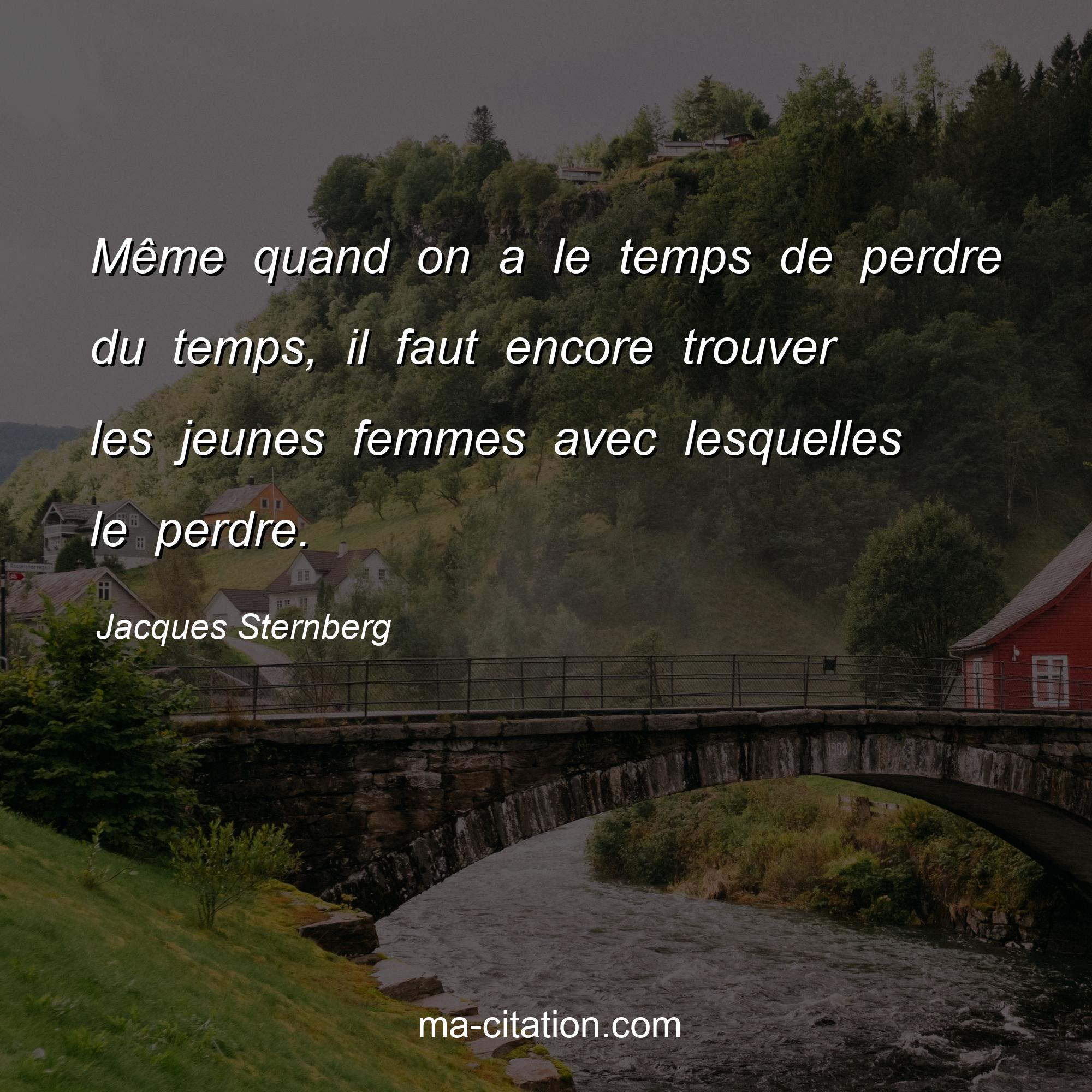 Citation sur la vie de Jacques Sternberg :Même quand on a le temps de perdre du temps, il faut encore trouver les jeunes femmes avec lesquelles le perdre.