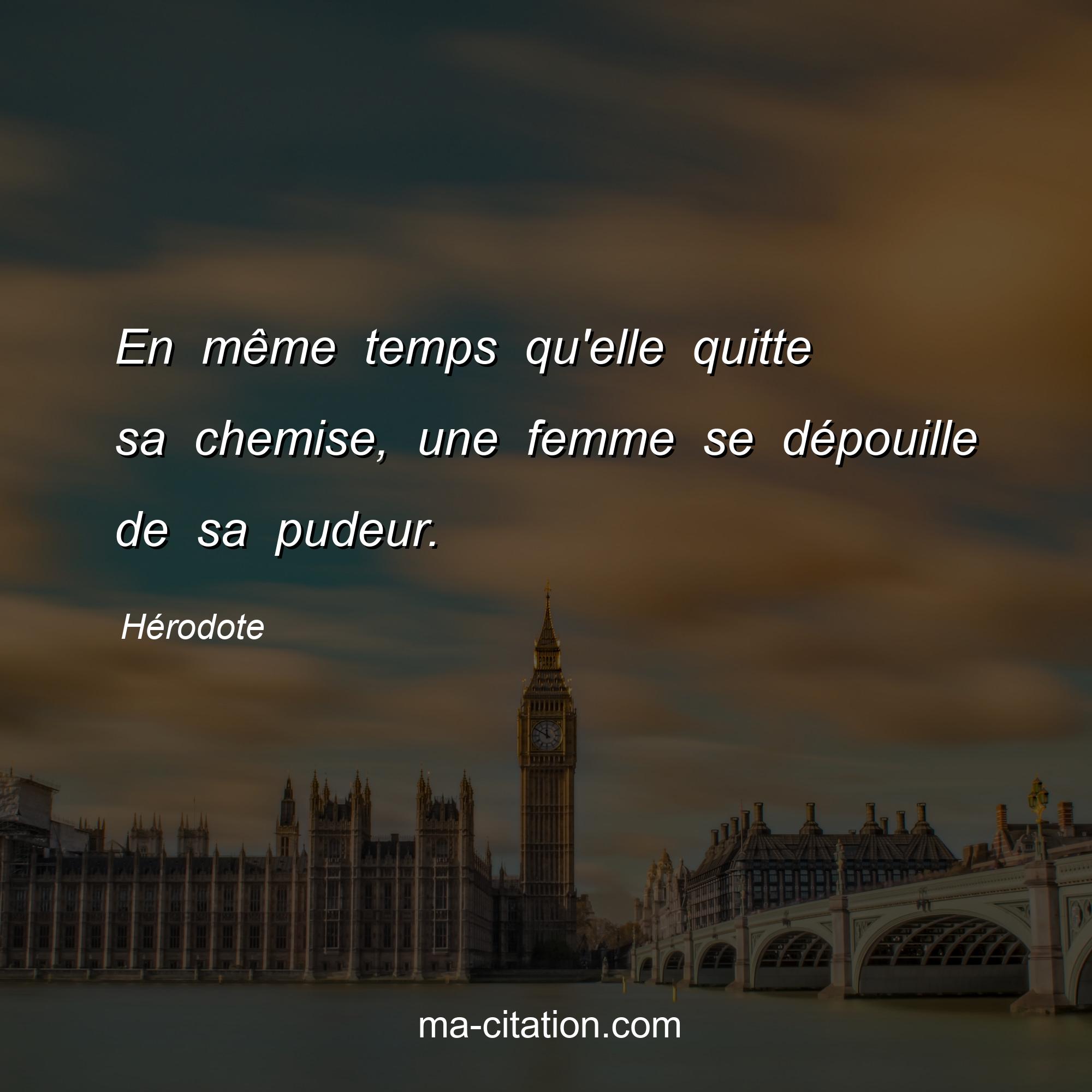Citation sur la vie de Hérodote :En même temps qu'elle quitte sa chemise, une femme se dépouille de sa pudeur.