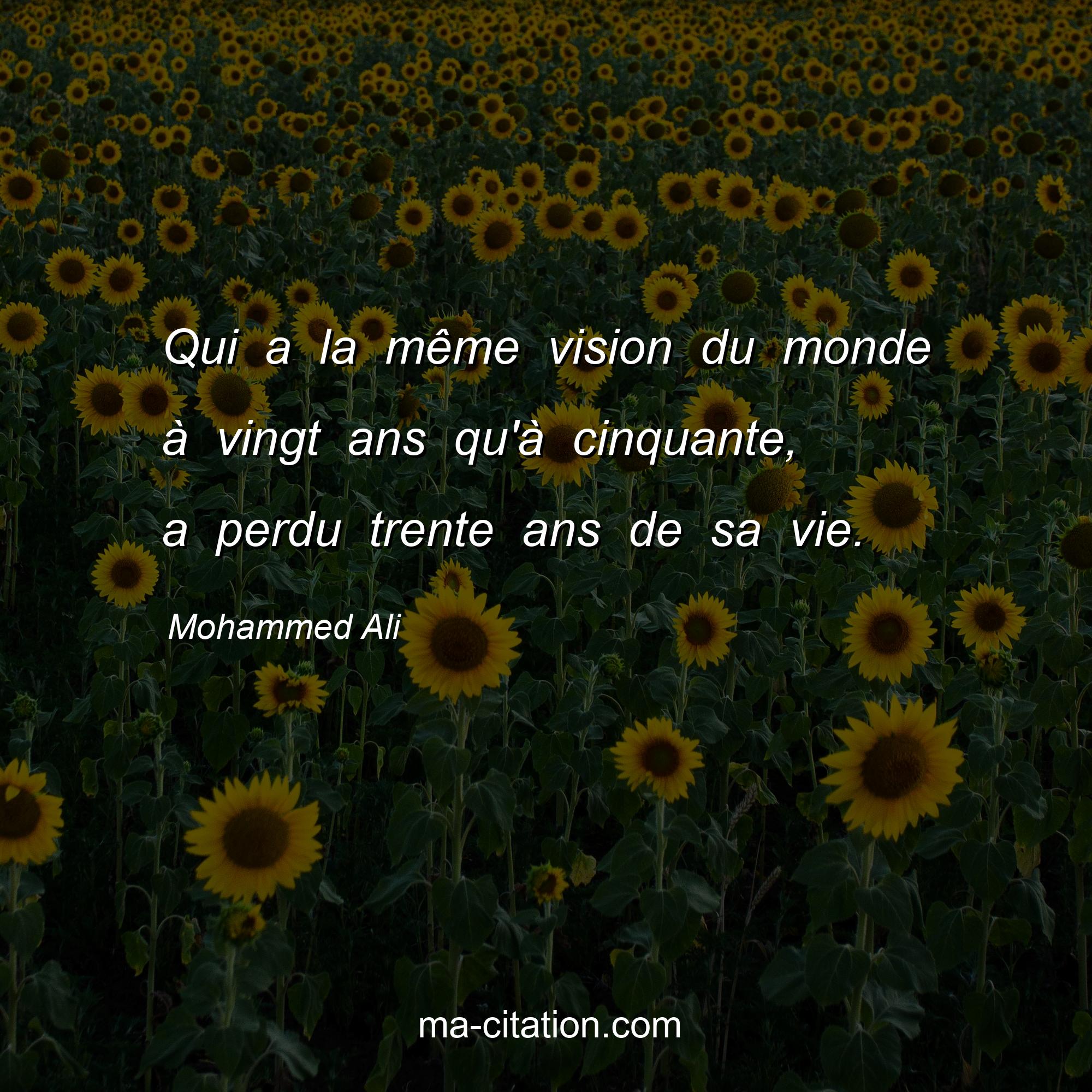 Mohammed Ali est l'auteur de la citation sur la vie "Qui a la même vision du monde à vingt ans qu'à cinquante, a perdu trente ans de sa vie.".