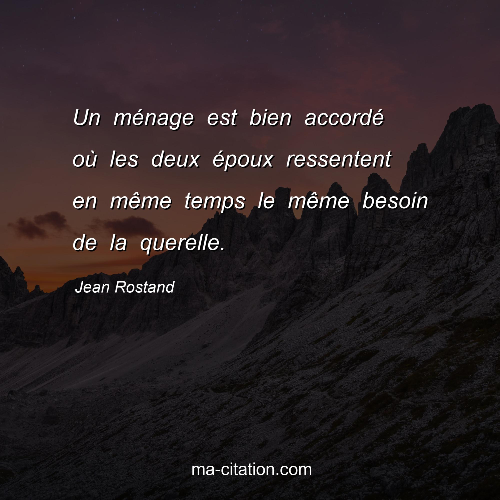 Citation sur la vie de Jean Rostand :Un ménage est bien accordé où les deux époux ressentent en même temps le même besoin de la querelle.
