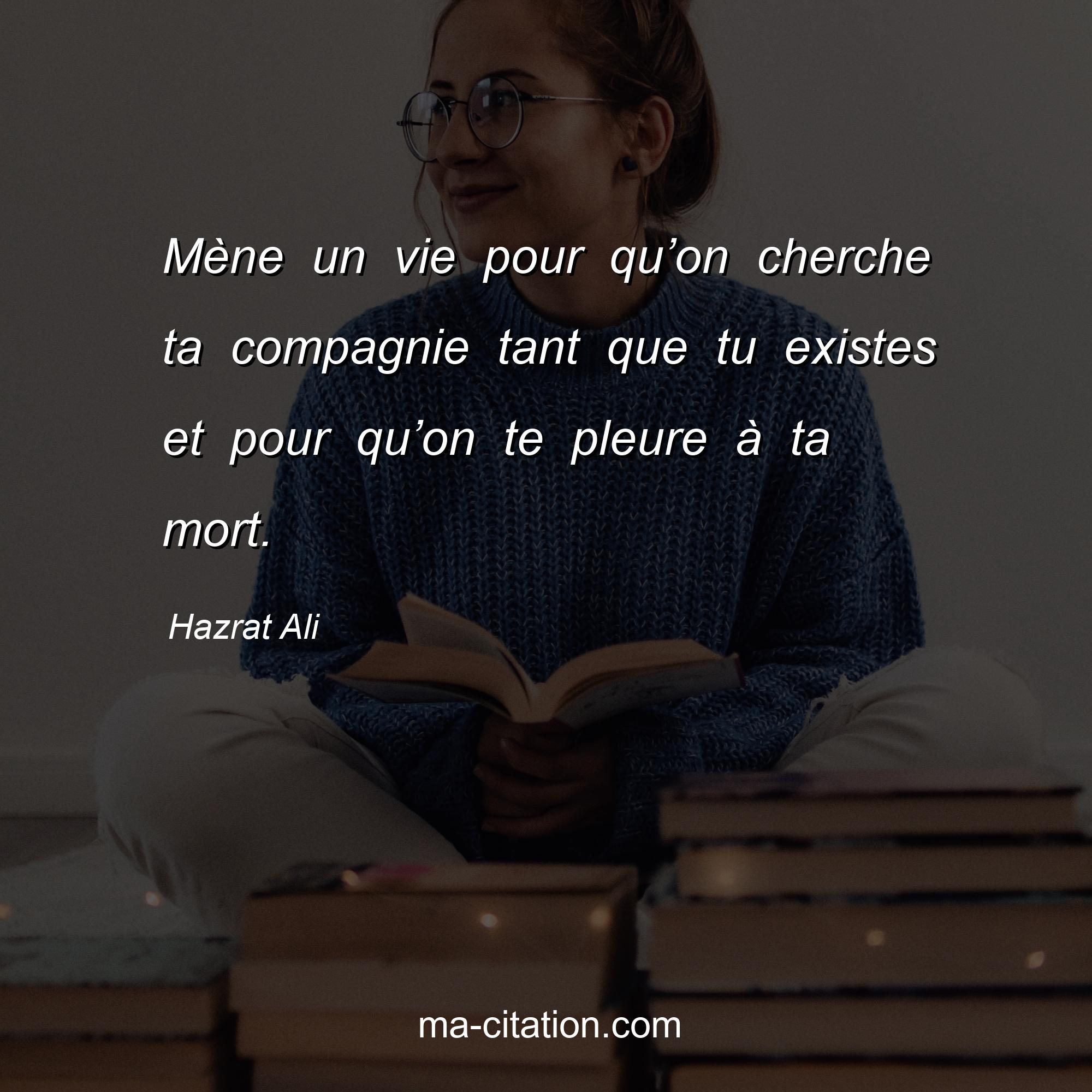 Hazrat Ali est l'auteur de la citation sur la vie "Mène un vie pour qu’on cherche ta compagnie tant que tu existes et pour qu’on te pleure à ta mort.".