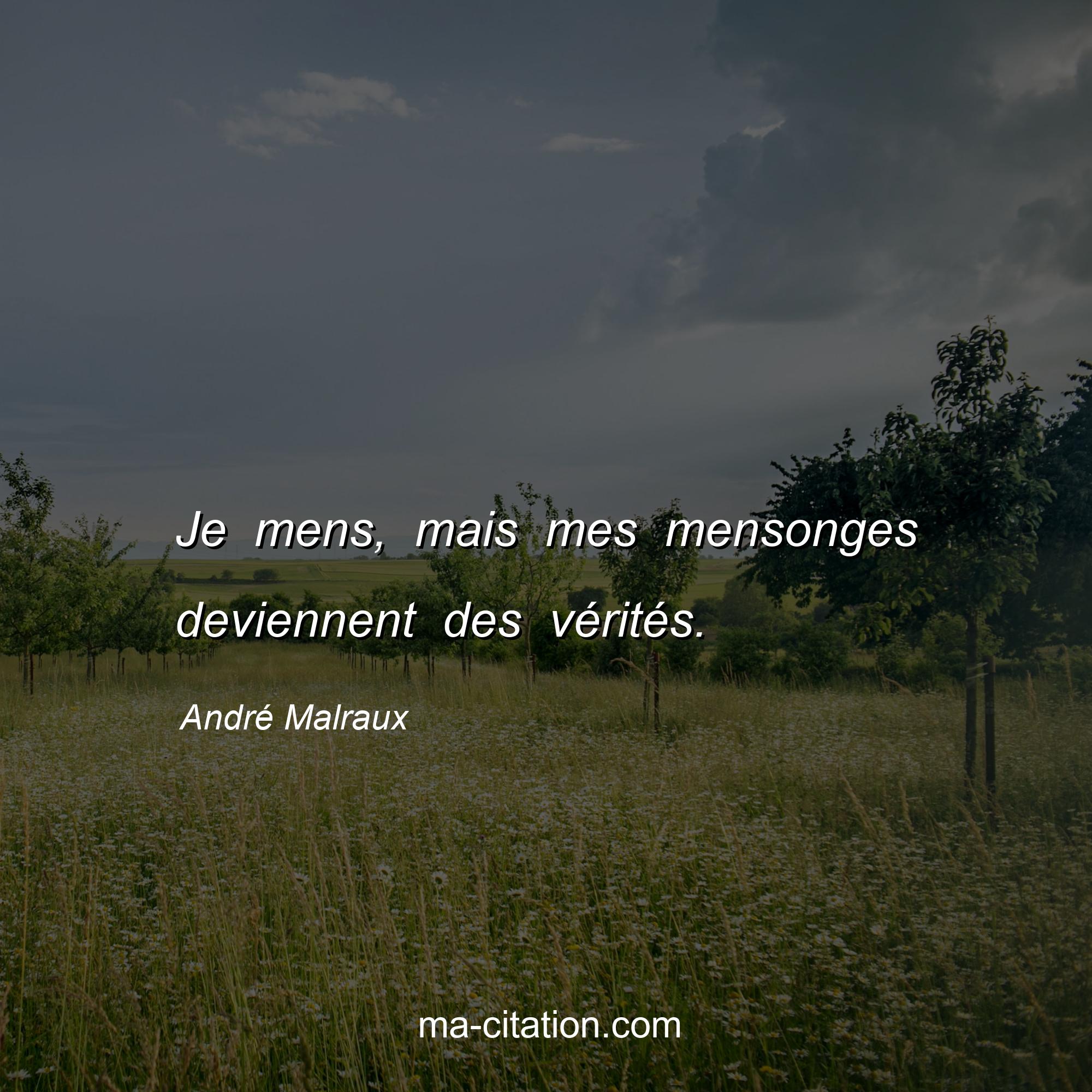 Citation sur la vie d'André Malraux :Je mens, mais mes mensonges deviennent des vérités.
