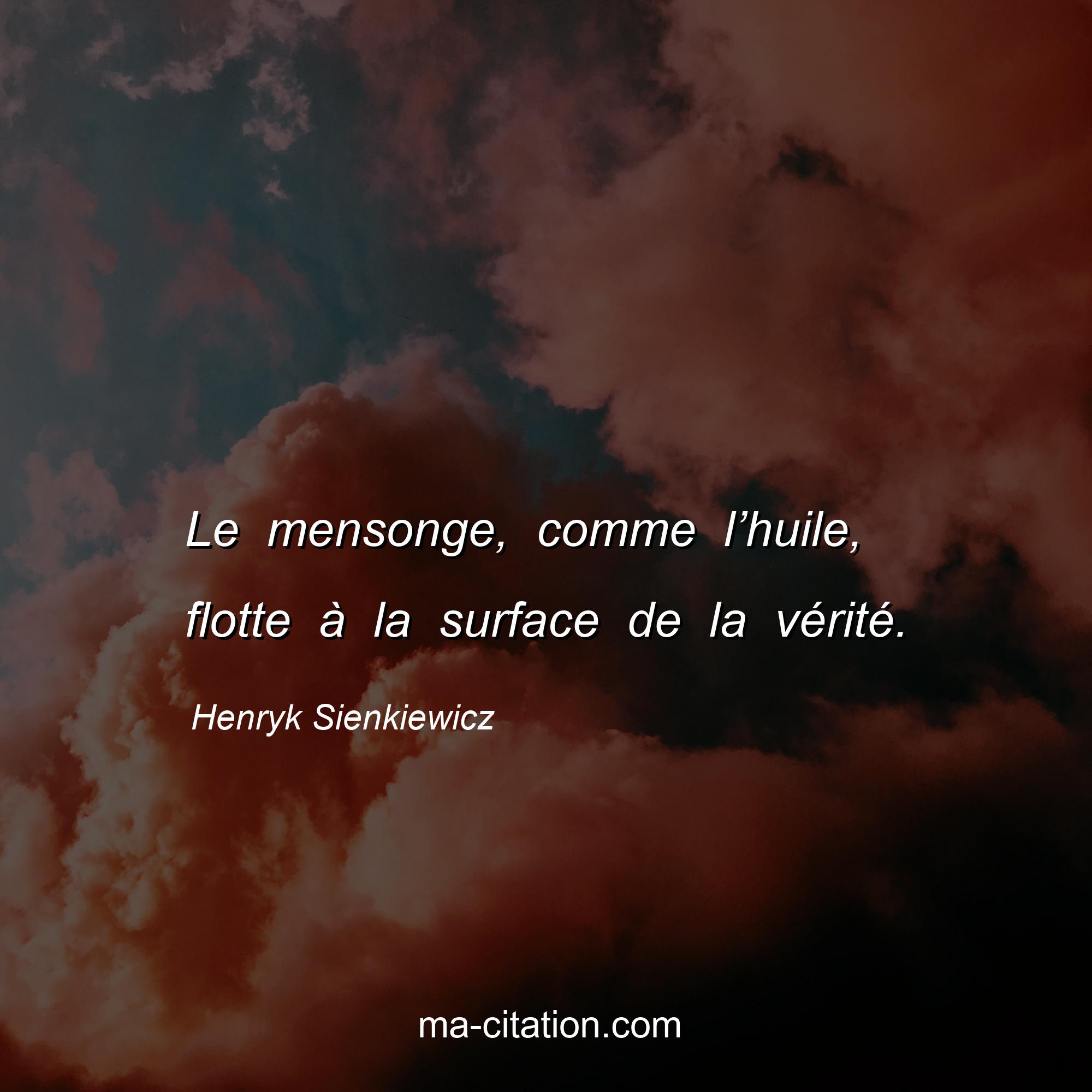 Citation sur la vie de Henryk Sienkiewicz :Le mensonge, comme l’huile, flotte à la surface de la vérité.