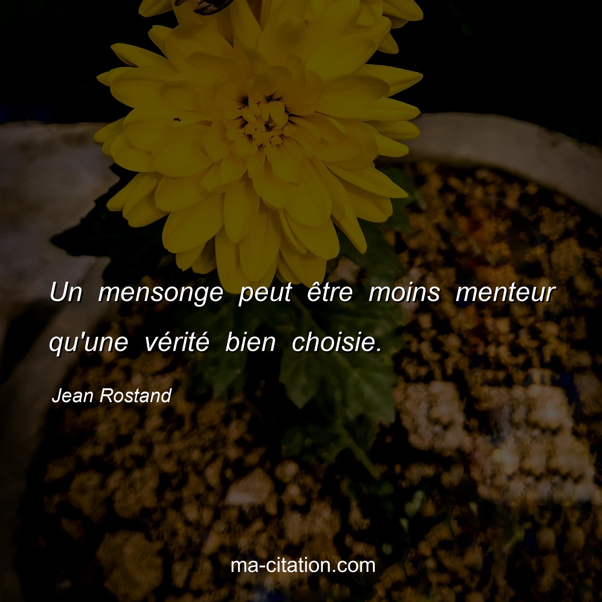 Citation sur la vie de Jean Rostand :Un mensonge peut être moins menteur qu'une vérité bien choisie.