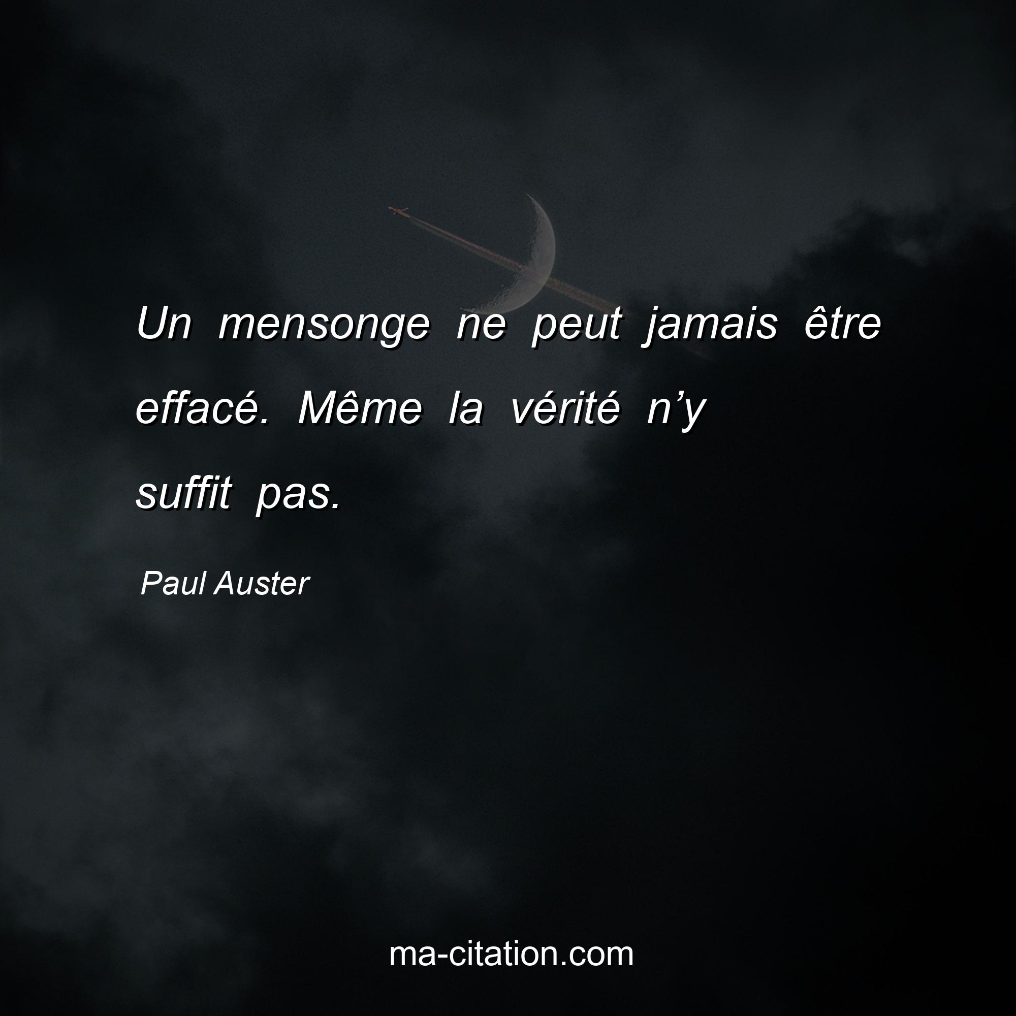 Citation sur la vie de Paul Auster :Un mensonge ne peut jamais être effacé. Même la vérité n’y suffit pas.