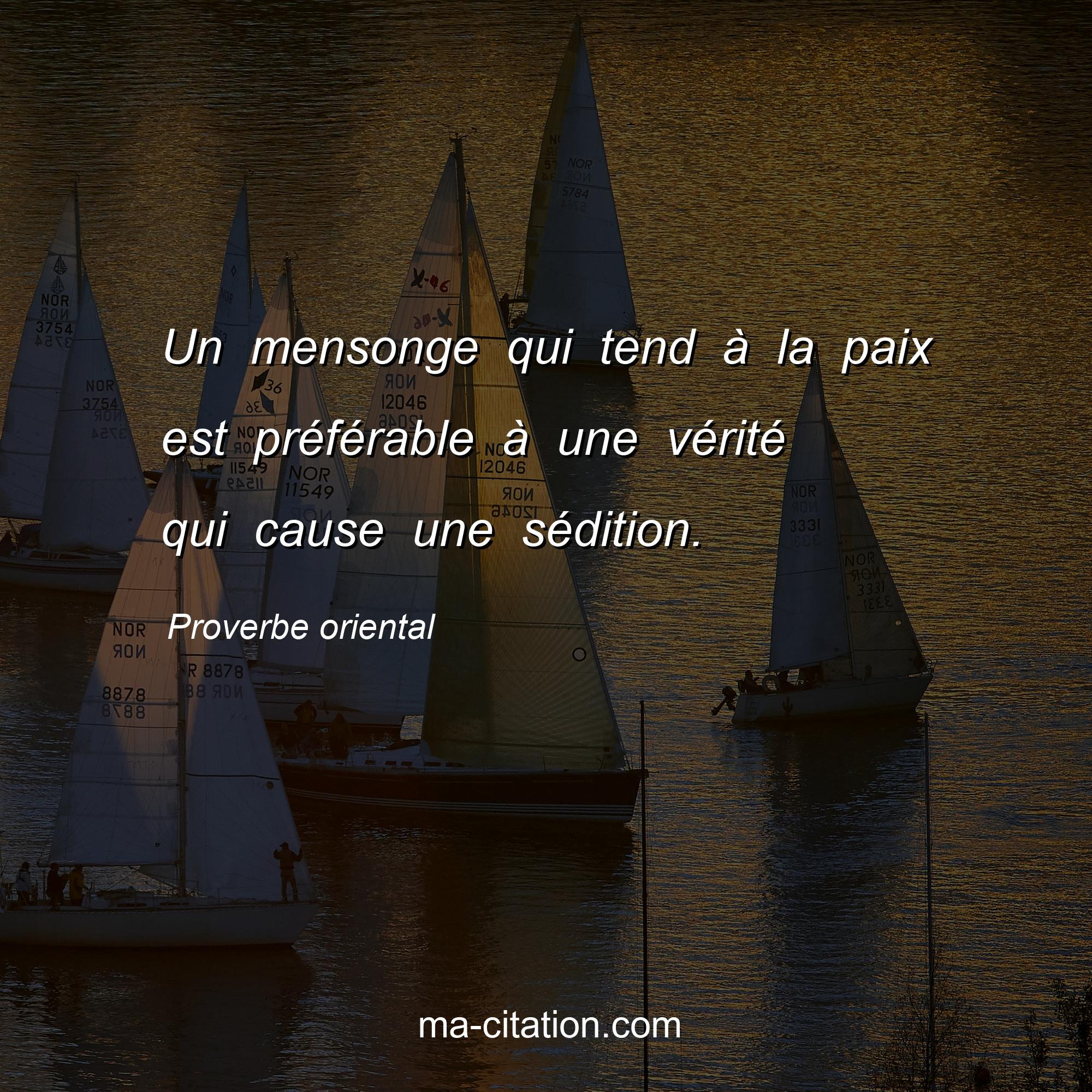 Proverbe oriental sur la vie :Un mensonge qui tend à la paix est préférable à une vérité qui cause une sédition.