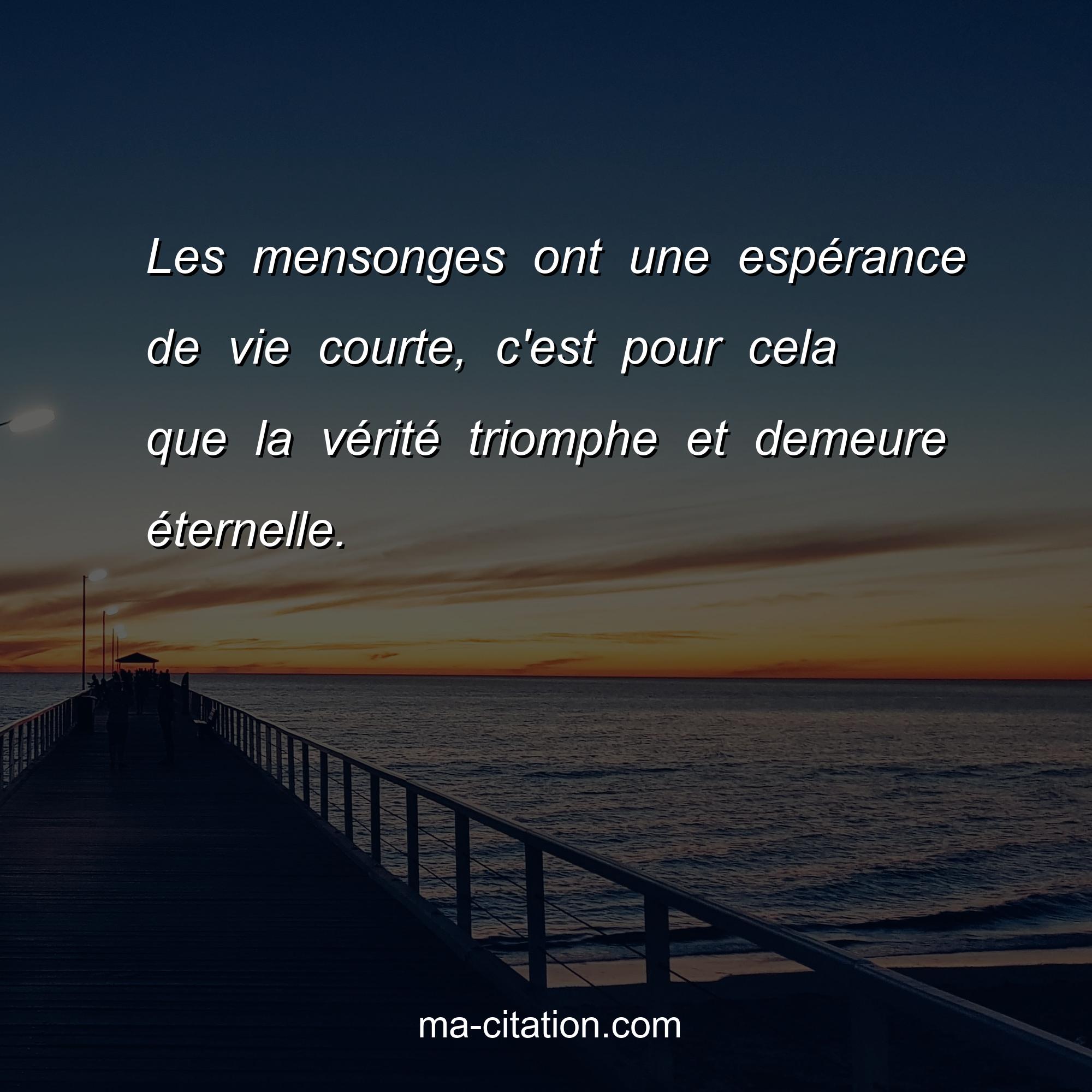Les mensonges ont une espérance de vie courte, c'est pour cela que la vérité triomphe et demeure éternelle.