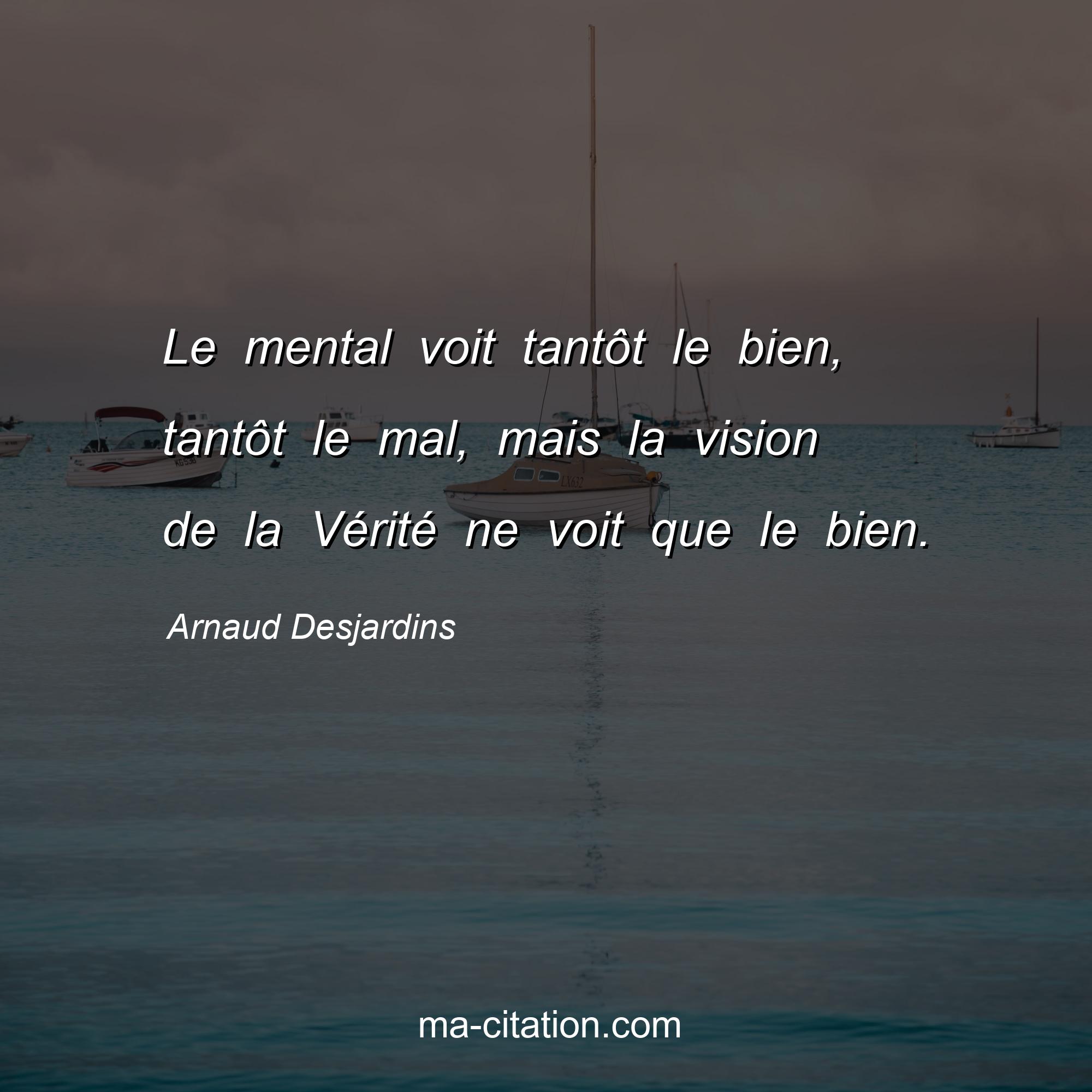 Citation sur la vie d'Arnaud Desjardins :Le mental voit tantôt le bien, tantôt le mal, mais la vision de la Vérité ne voit que le bien.