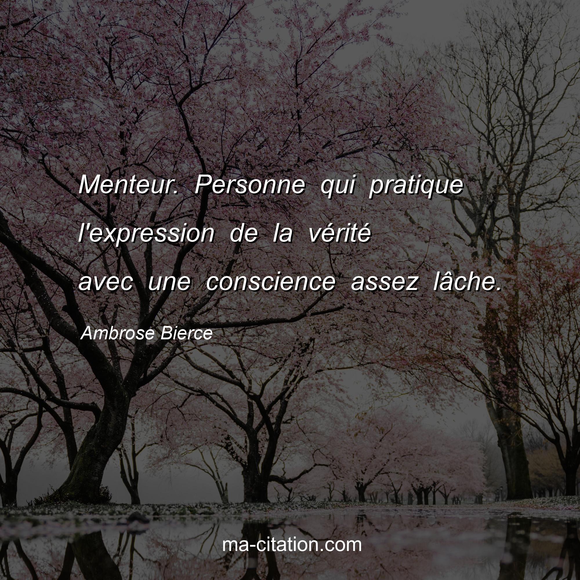 Citation sur la vie d'Ambrose Bierce :Menteur. Personne qui pratique l'expression de la vérité avec une conscience assez lâche.