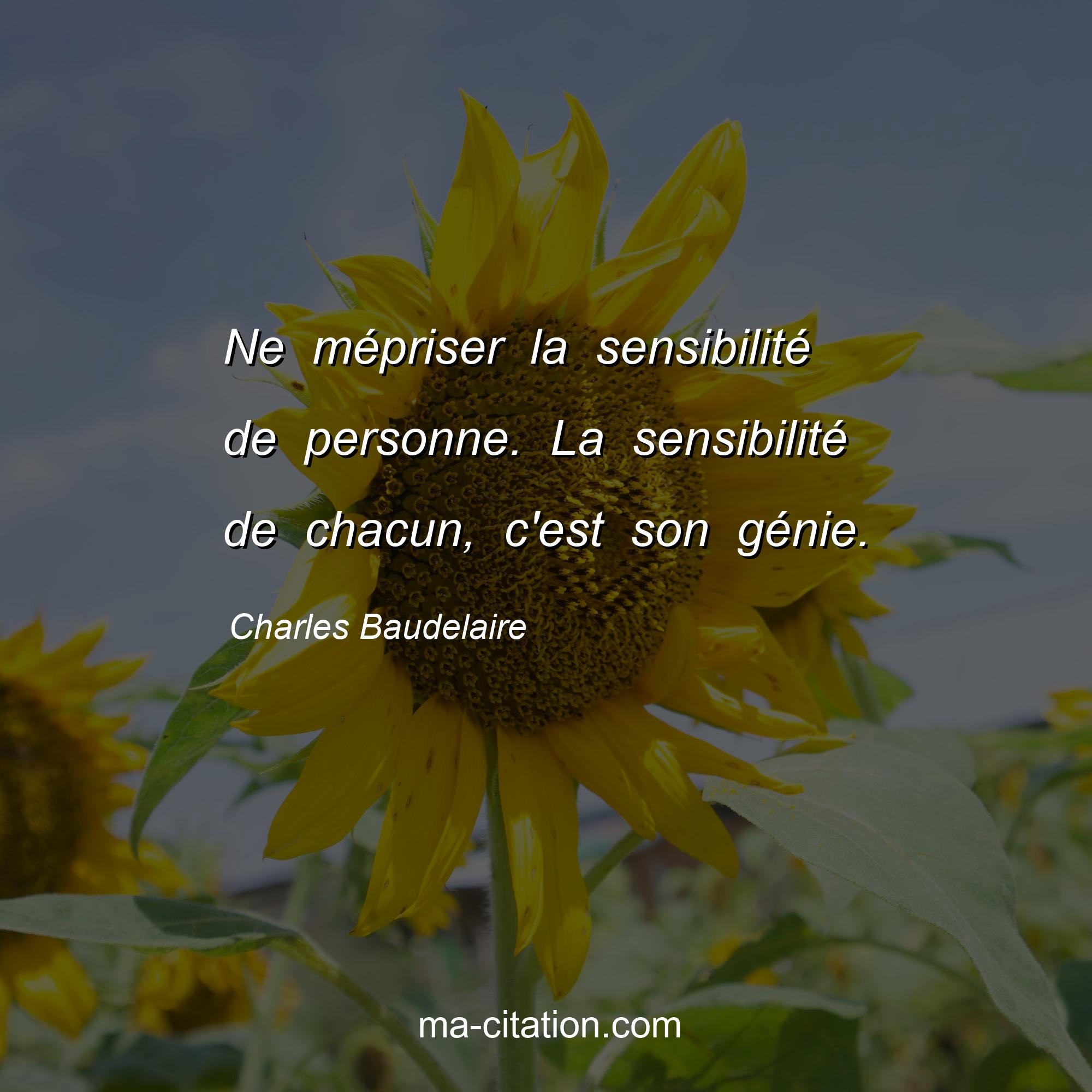 Citation sur la vie de Charles Baudelaire :Ne mépriser la sensibilité de personne. La sensibilité de chacun, c'est son génie.