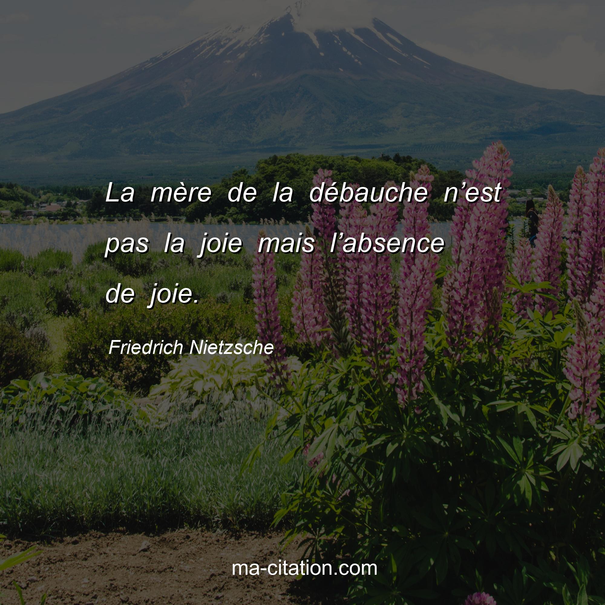 Citation sur la vie de Friedrich Nietzsche :La mère de la débauche n’est pas la joie mais l’absence de joie.