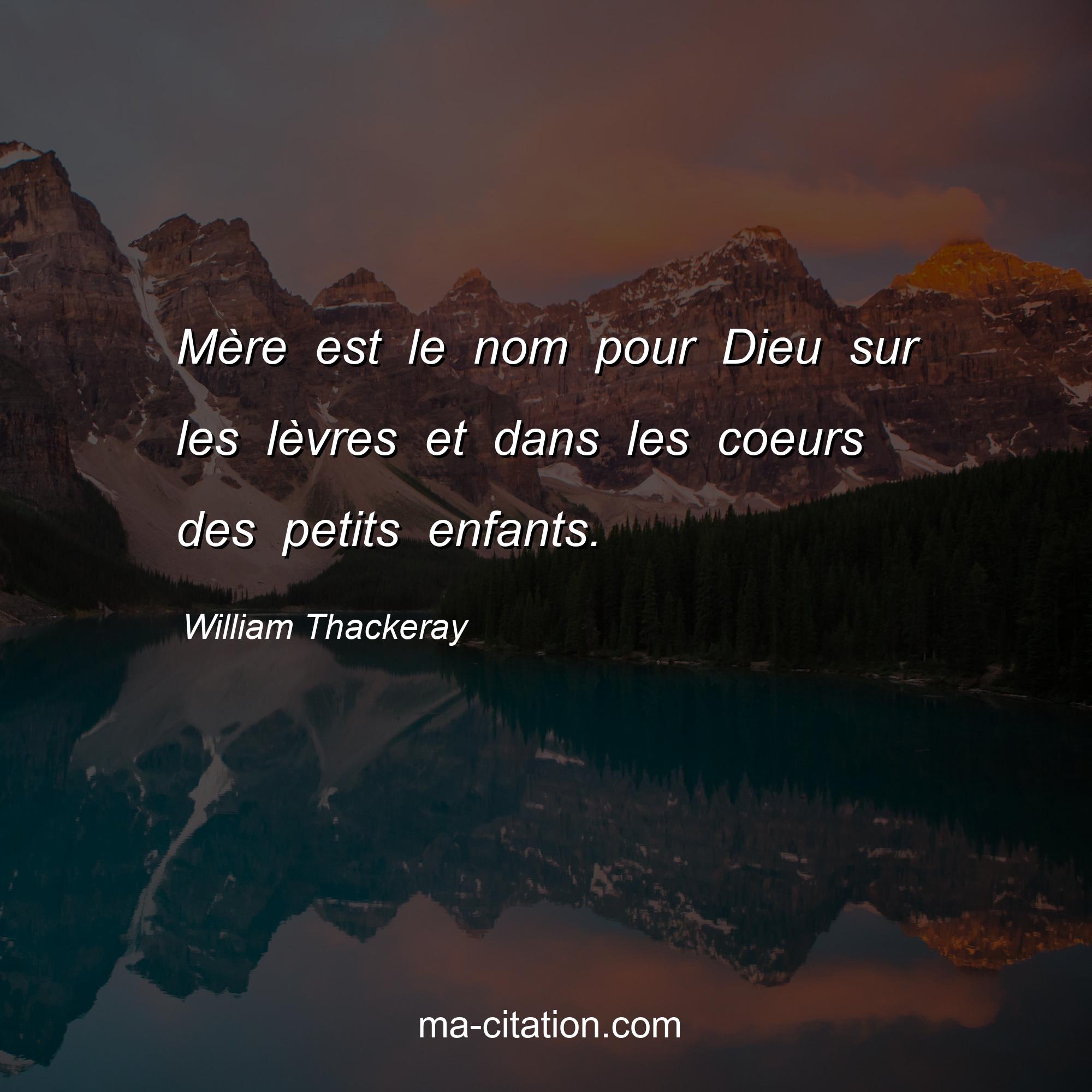 Citation sur la vie de William Thackeray :Mère est le nom pour Dieu sur les lèvres et dans les coeurs des petits enfants.