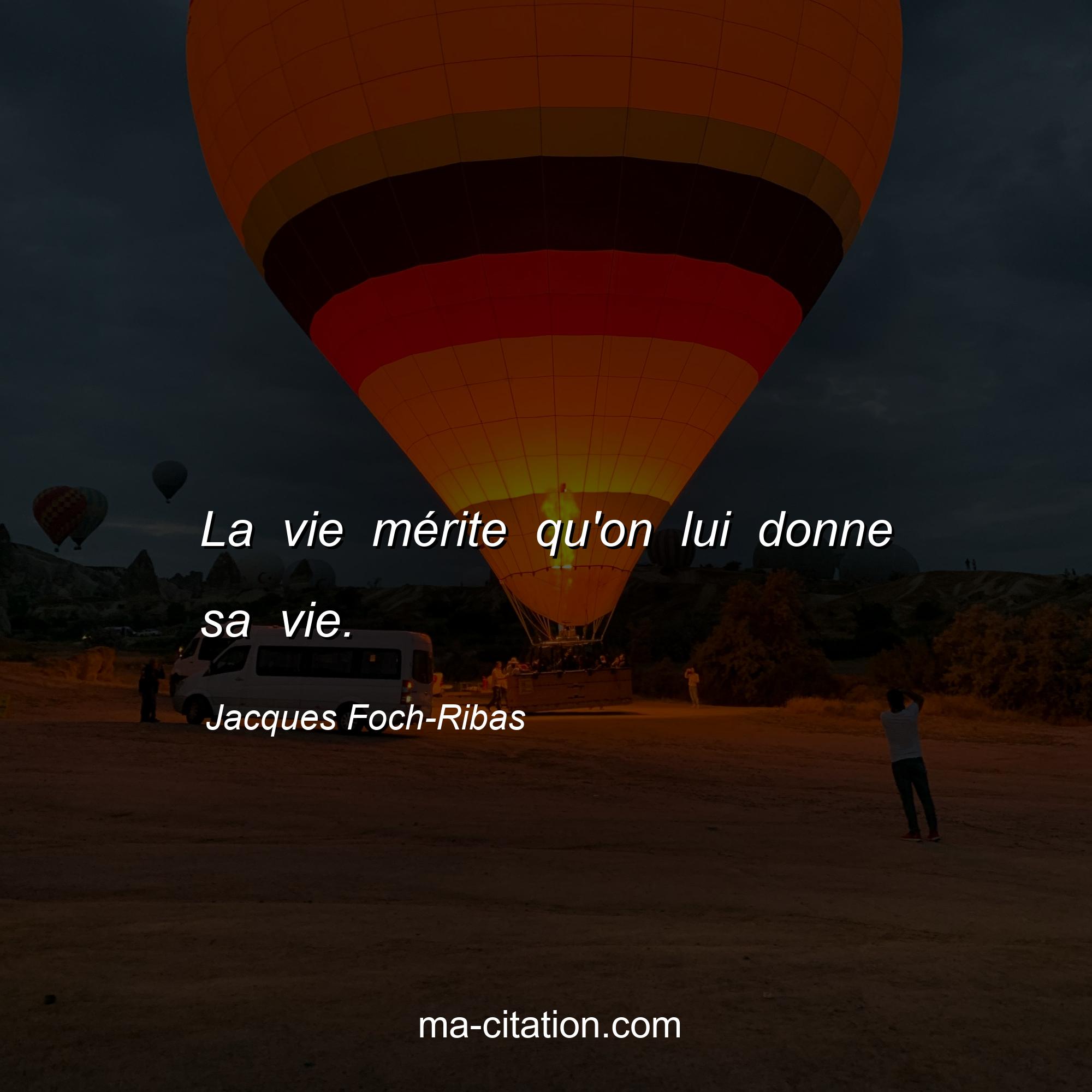 Citation sur la vie de Jacques Foch-Ribas :La vie mérite qu'on lui donne sa vie.