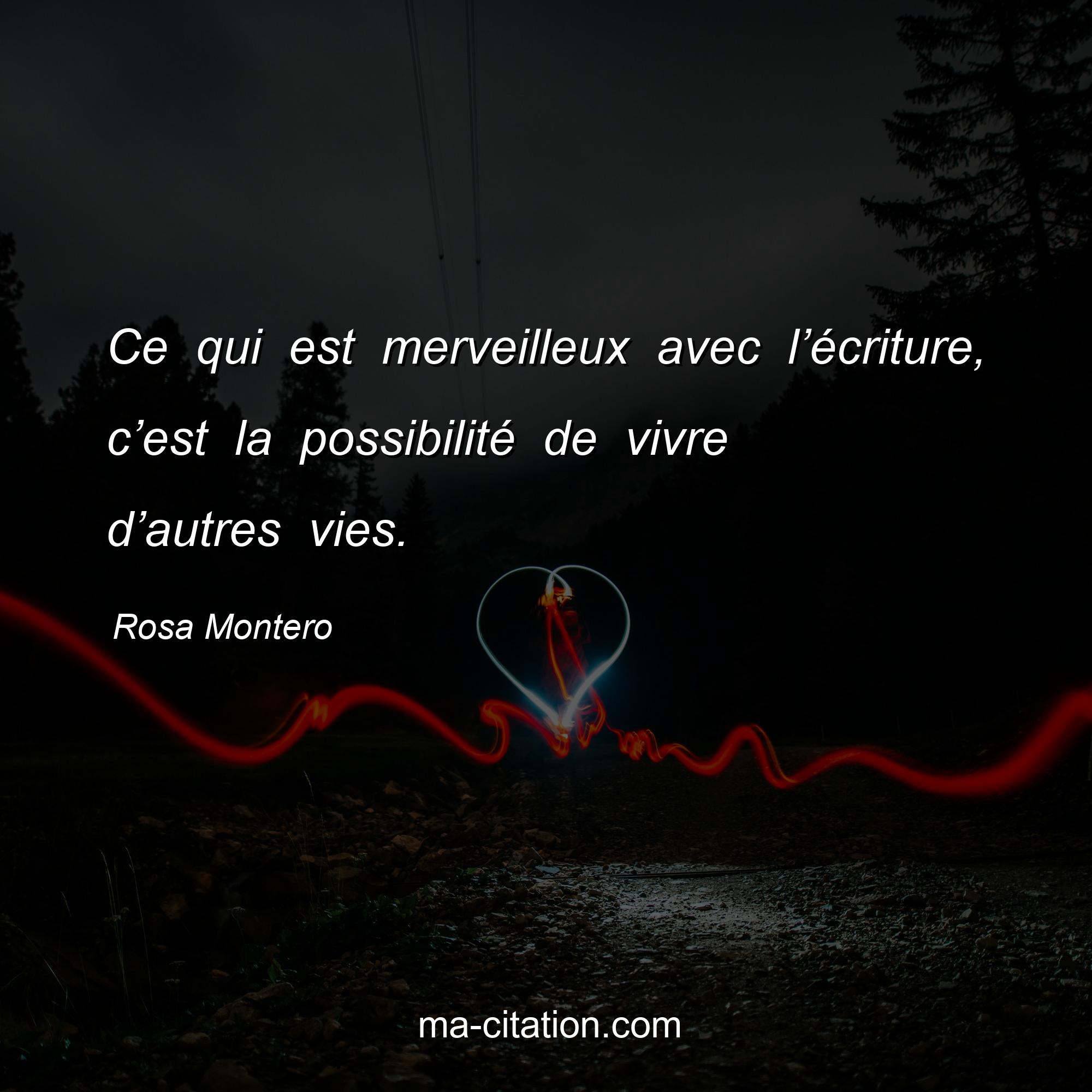 Rosa Montero est l'auteur de la citation sur la vie "Ce qui est merveilleux avec l’écriture, c’est la possibilité de vivre d’autres vies.".