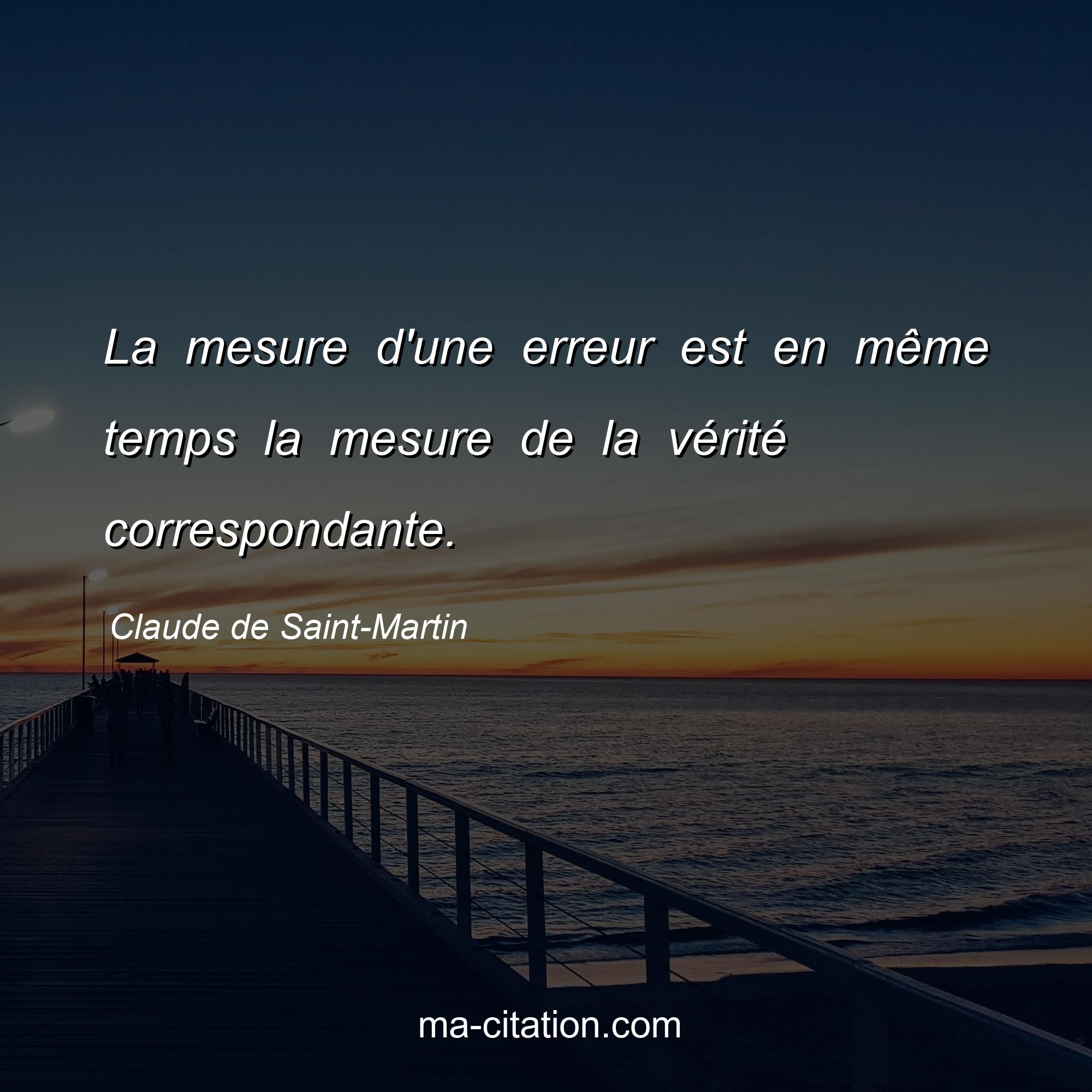 Citation sur la vie de Claude de Saint-Martin :La mesure d'une erreur est en même temps la mesure de la vérité correspondante.