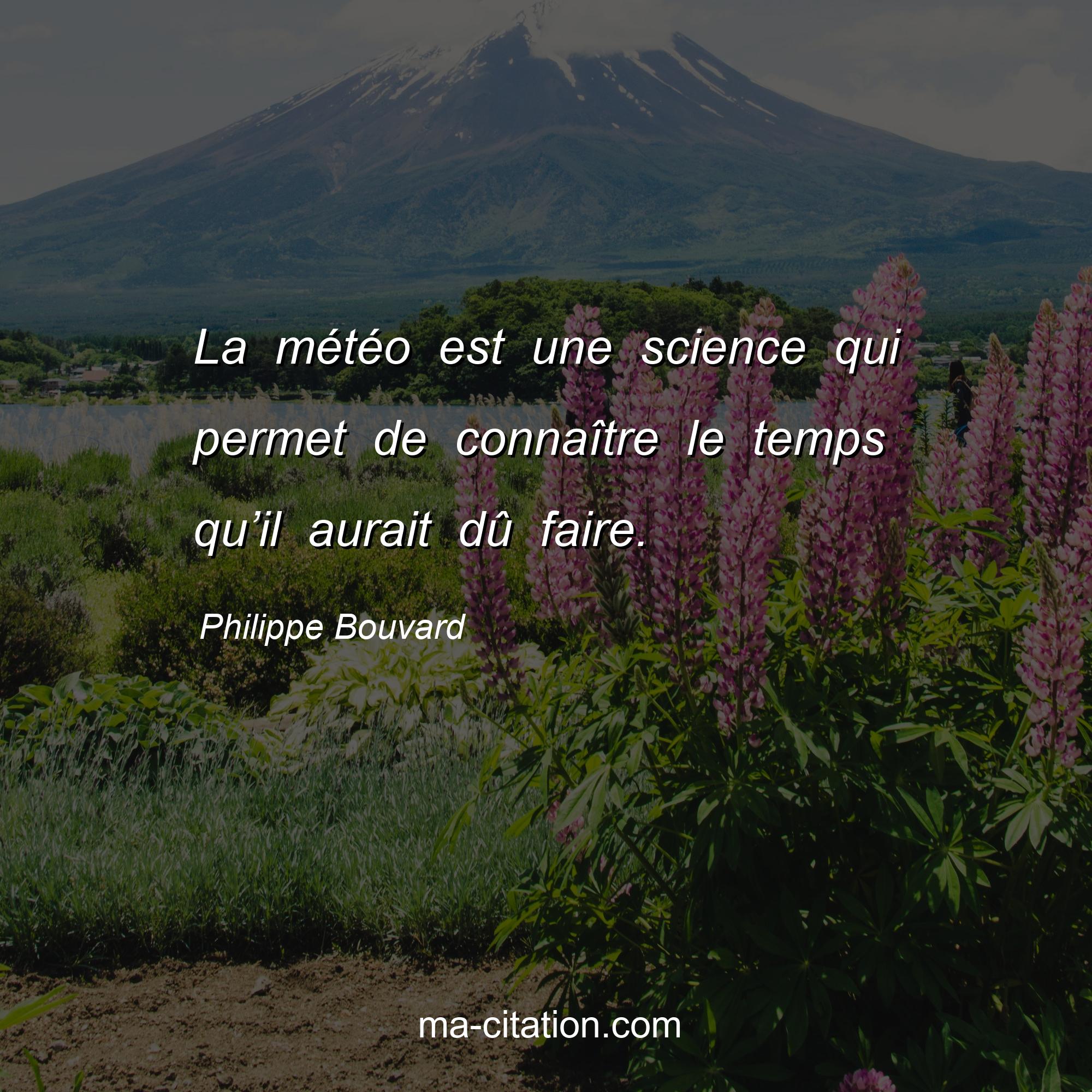 Citation sur la vie de Philippe Bouvard :La météo est une science qui permet de connaître le temps qu’il aurait dû faire.