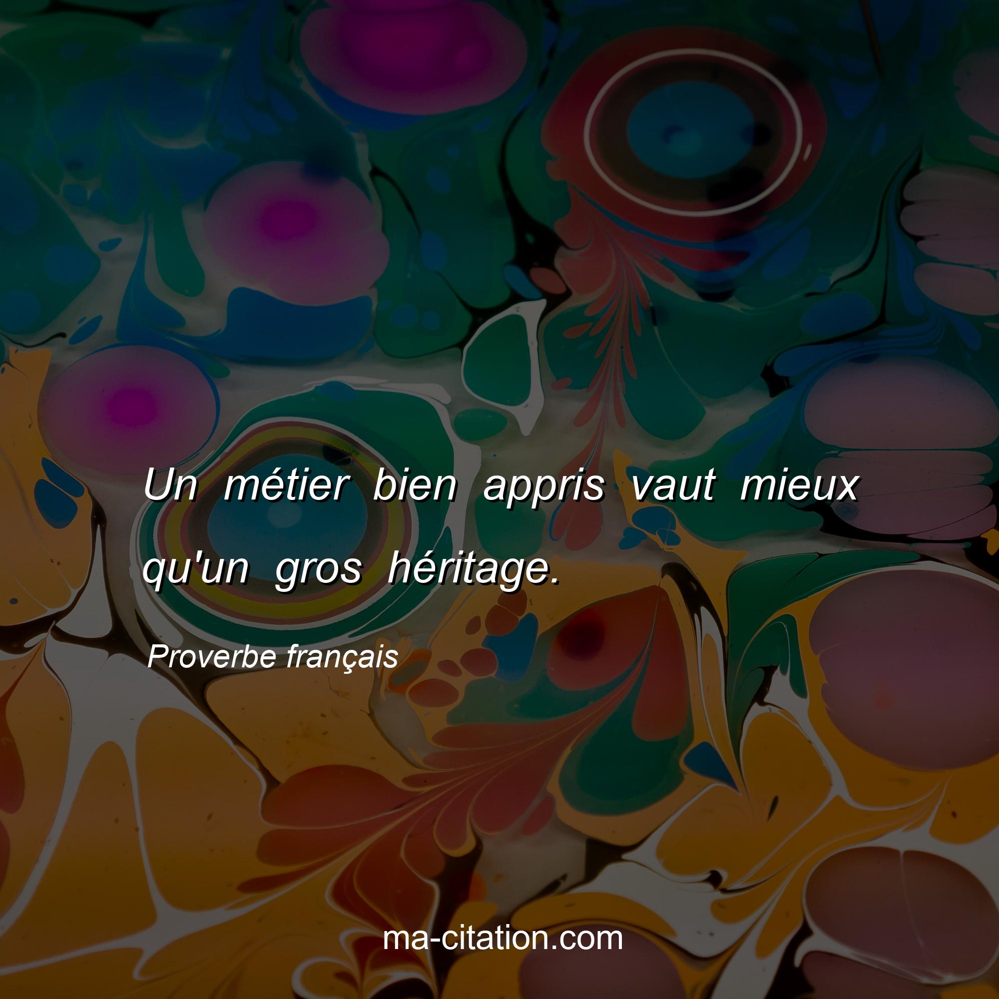 Proverbe français sur la vie :Un métier bien appris vaut mieux qu'un gros héritage.