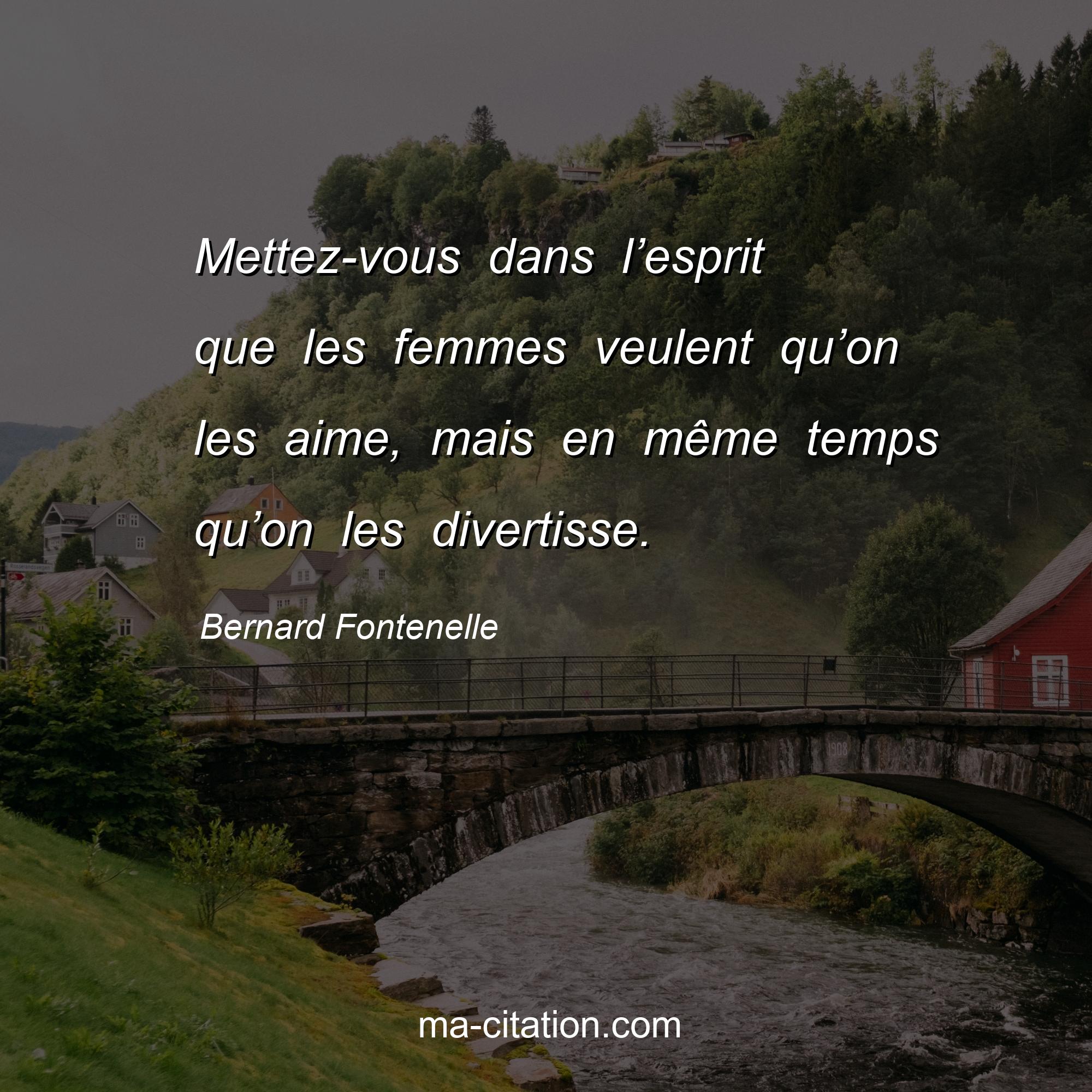 Citation sur la vie de Bernard Fontenelle :Mettez-vous dans l’esprit que les femmes veulent qu’on les aime, mais en même temps qu’on les divertisse.