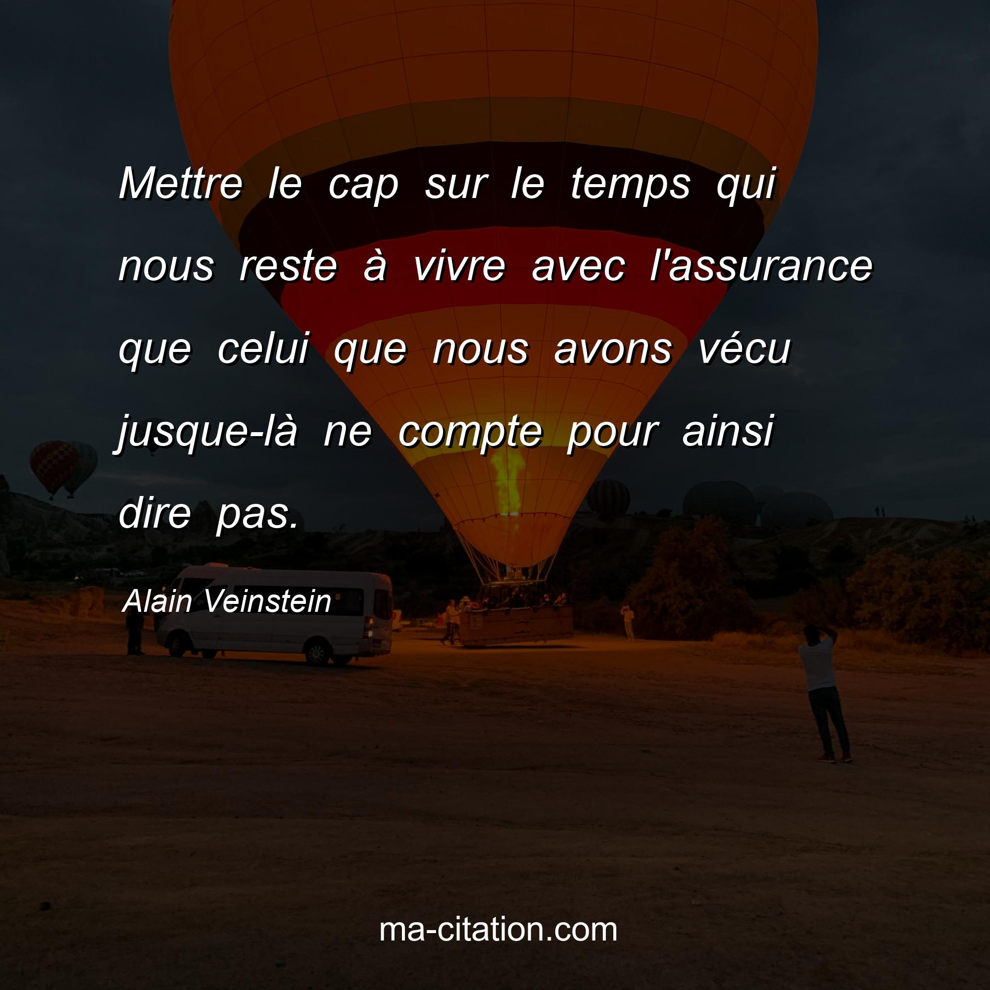 Citation sur la vie d'Alain Veinstein :Mettre le cap sur le temps qui nous reste à vivre avec l'assurance que celui que nous avons vécu jusque-là ne compte pour ainsi dire pas.