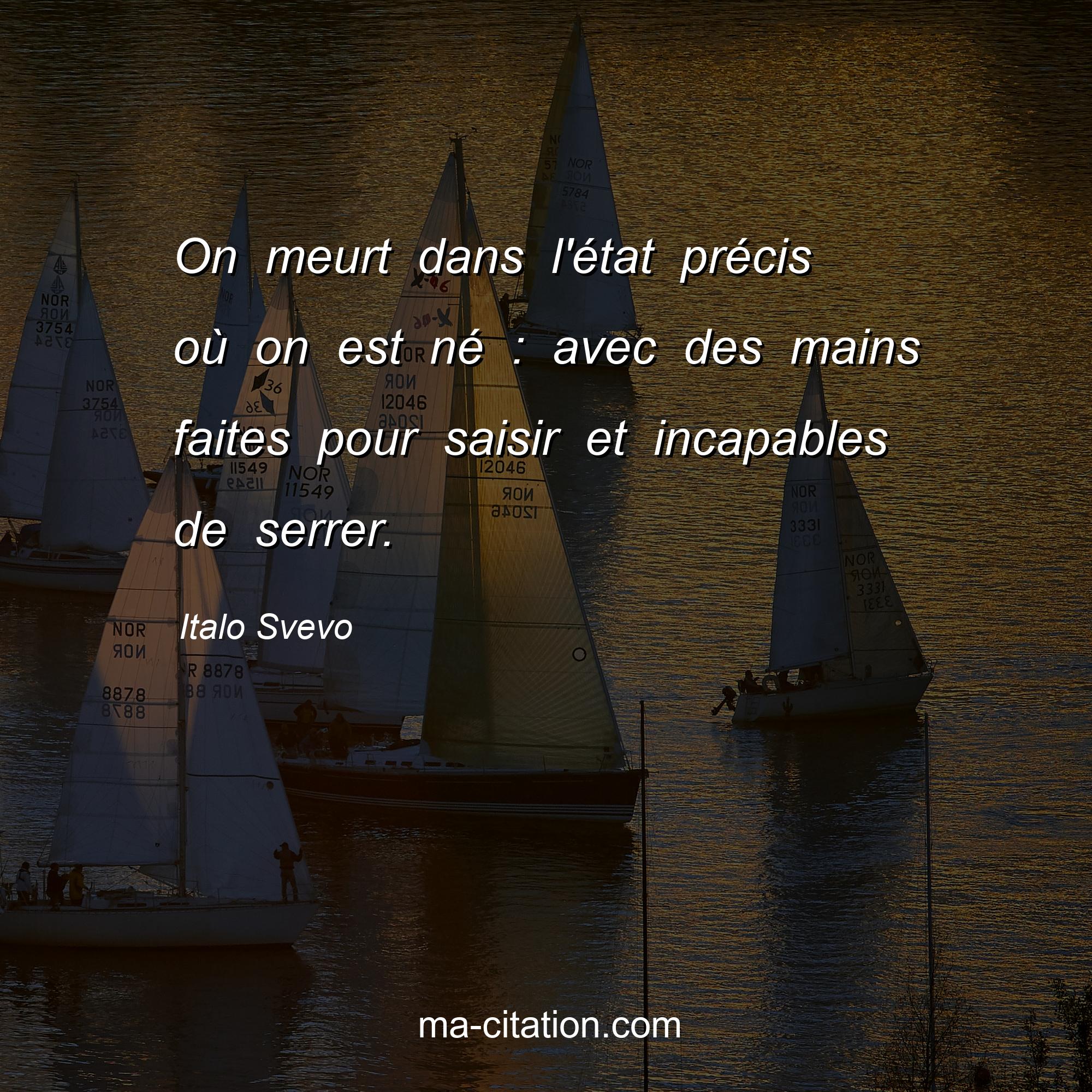 Italo Svevo est l'auteur de la citation sur la vie "On meurt dans l'état précis où on est né : avec des mains faites pour saisir et incapables de serrer.".
