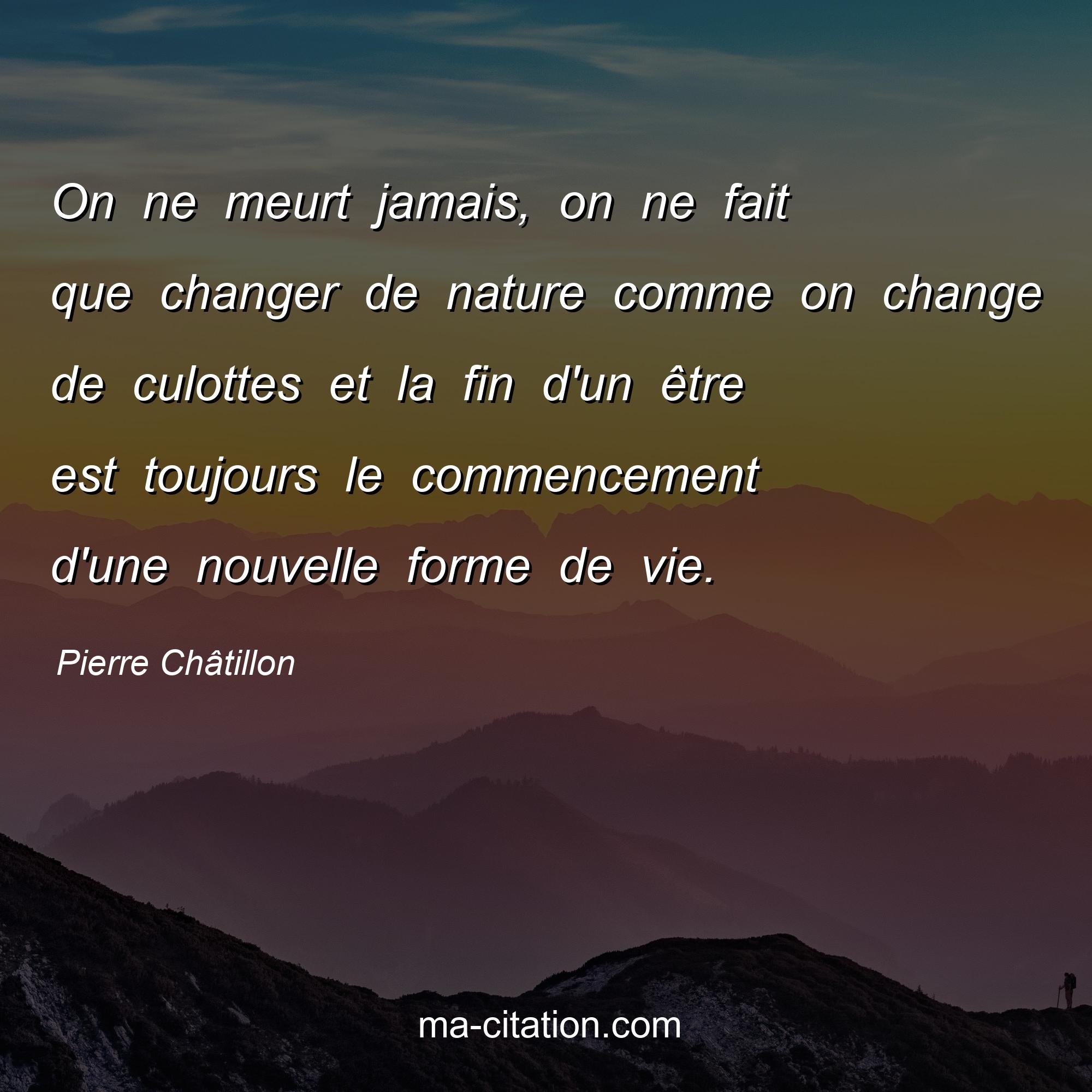 Citation sur la vie de Pierre Châtillon :On ne meurt jamais, on ne fait que changer de nature comme on change de culottes et la fin d'un être est toujours le commencement d'une nouvelle forme de vie.