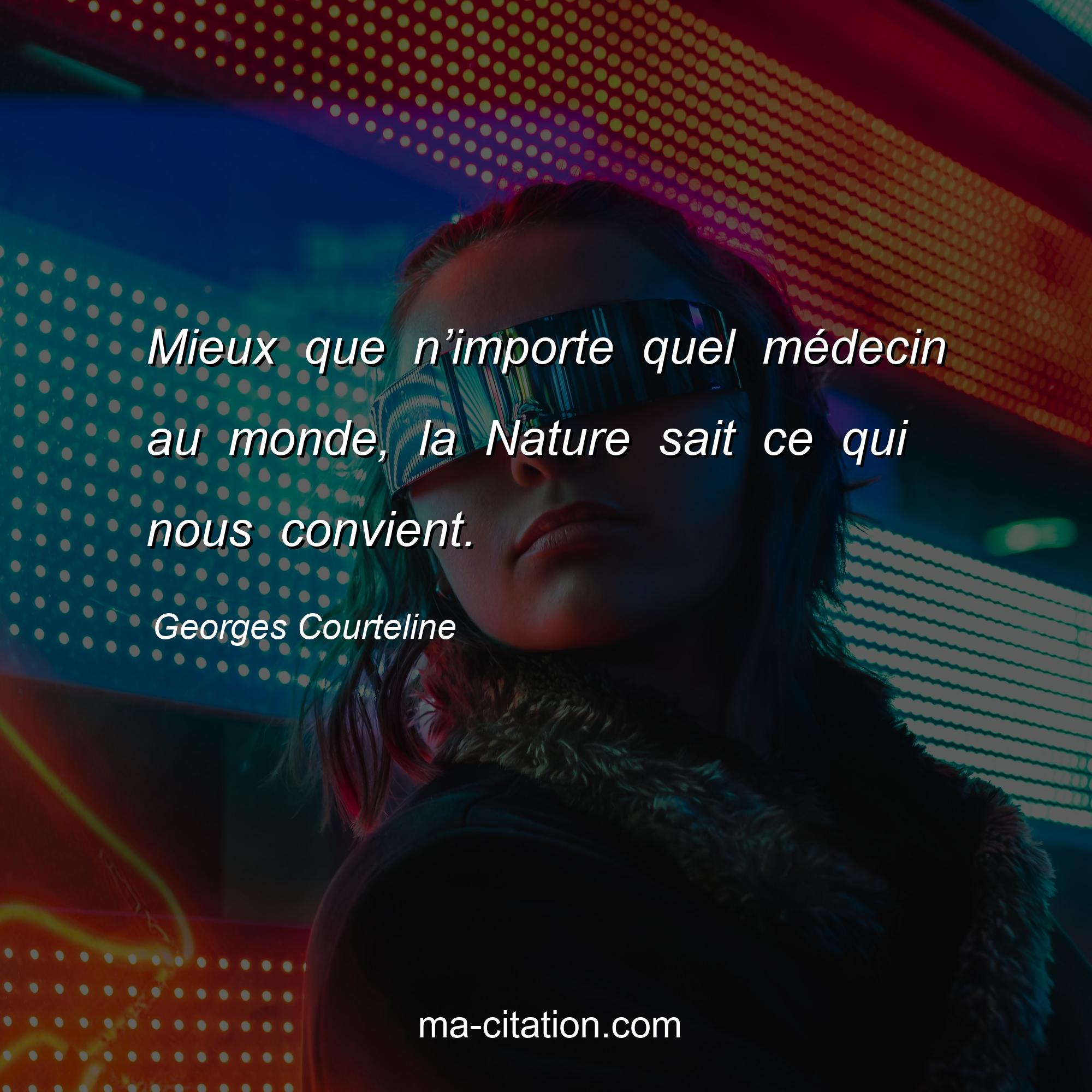 Citation sur la vie de Georges Courteline :Mieux que n’importe quel médecin au monde, la Nature sait ce qui nous convient.