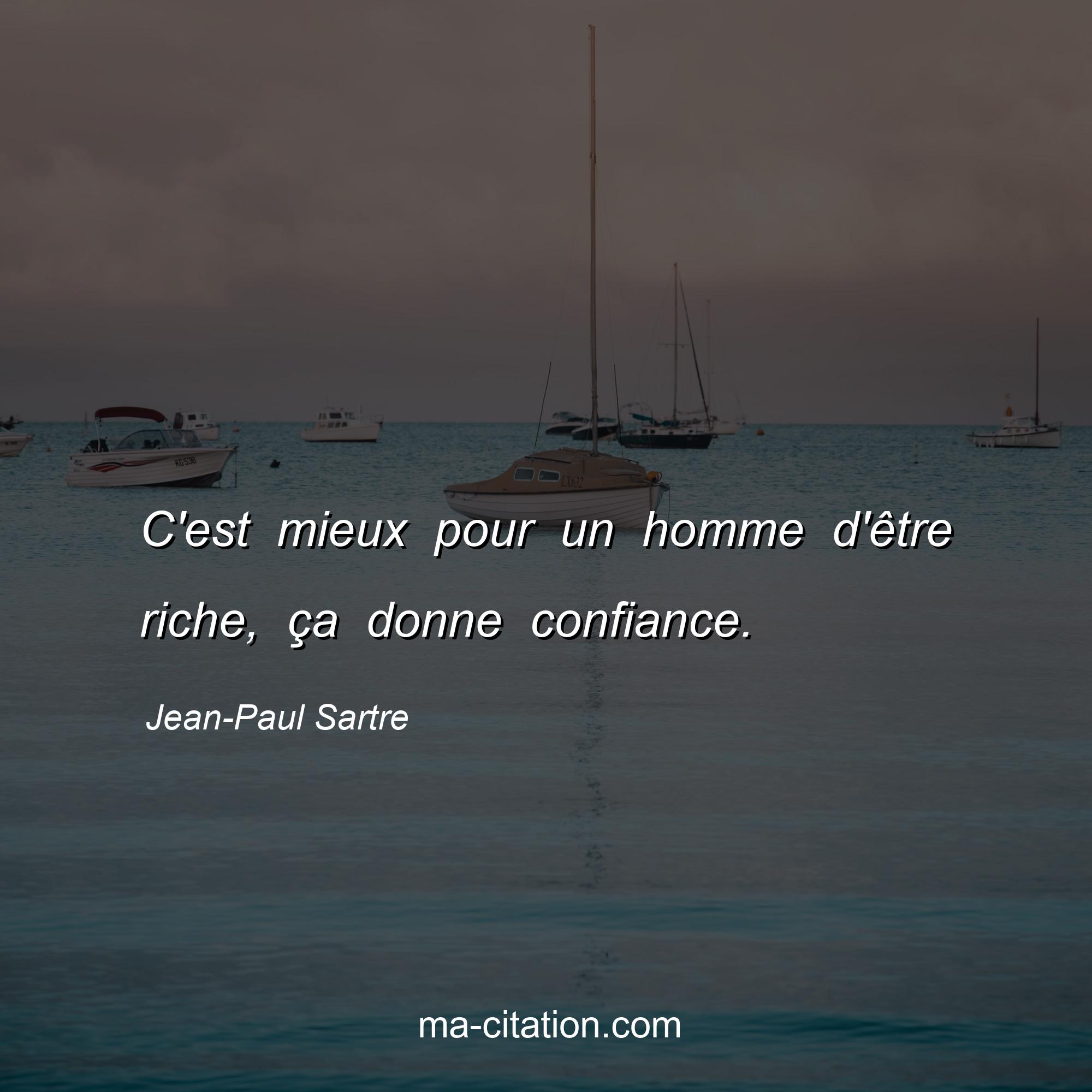 Citation sur la vie de Jean-Paul Sartre :C'est mieux pour un homme d'être riche, ça donne confiance.