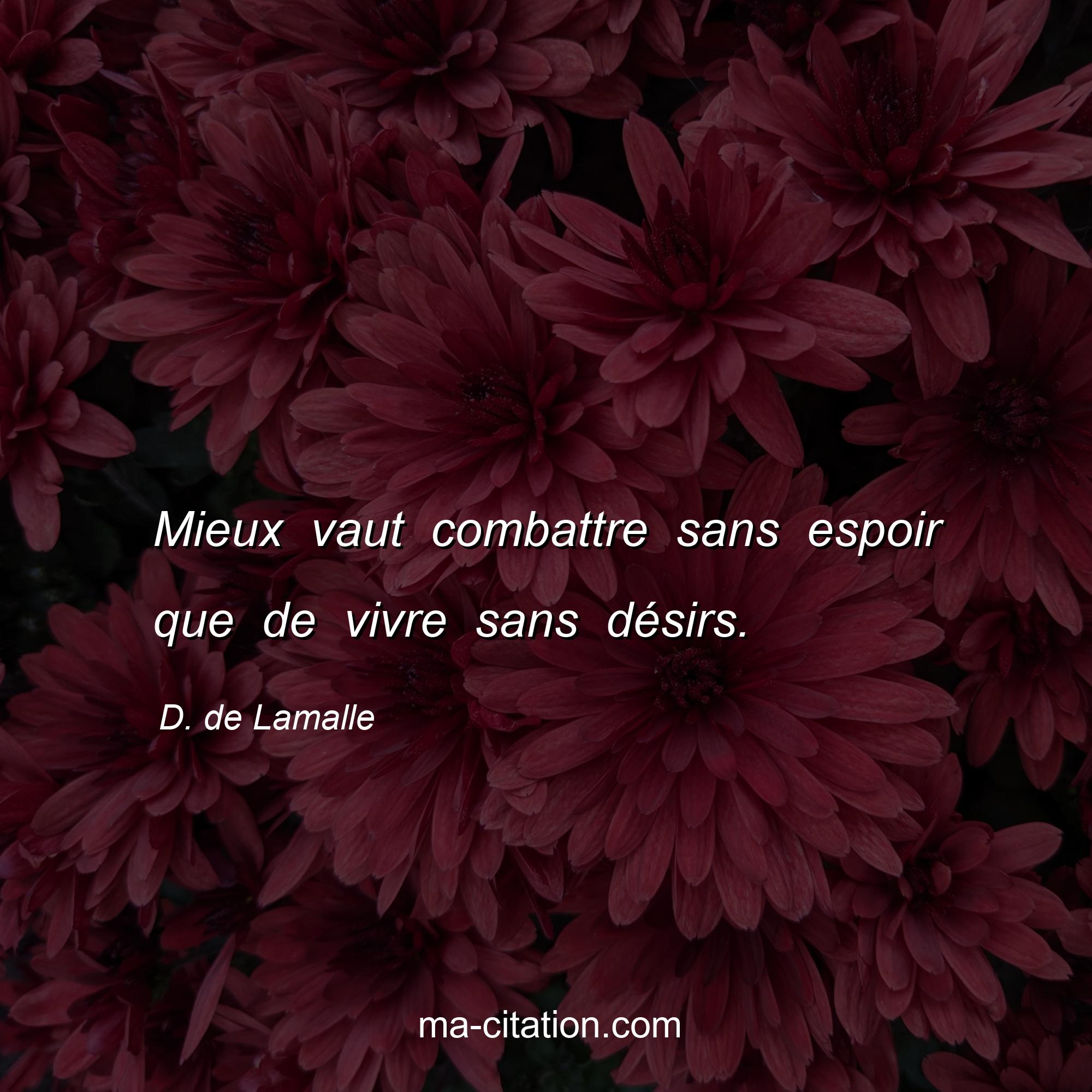 D. de Lamalle est l'auteur de la citation sur la vie "Mieux vaut combattre sans espoir que de vivre sans désirs.".