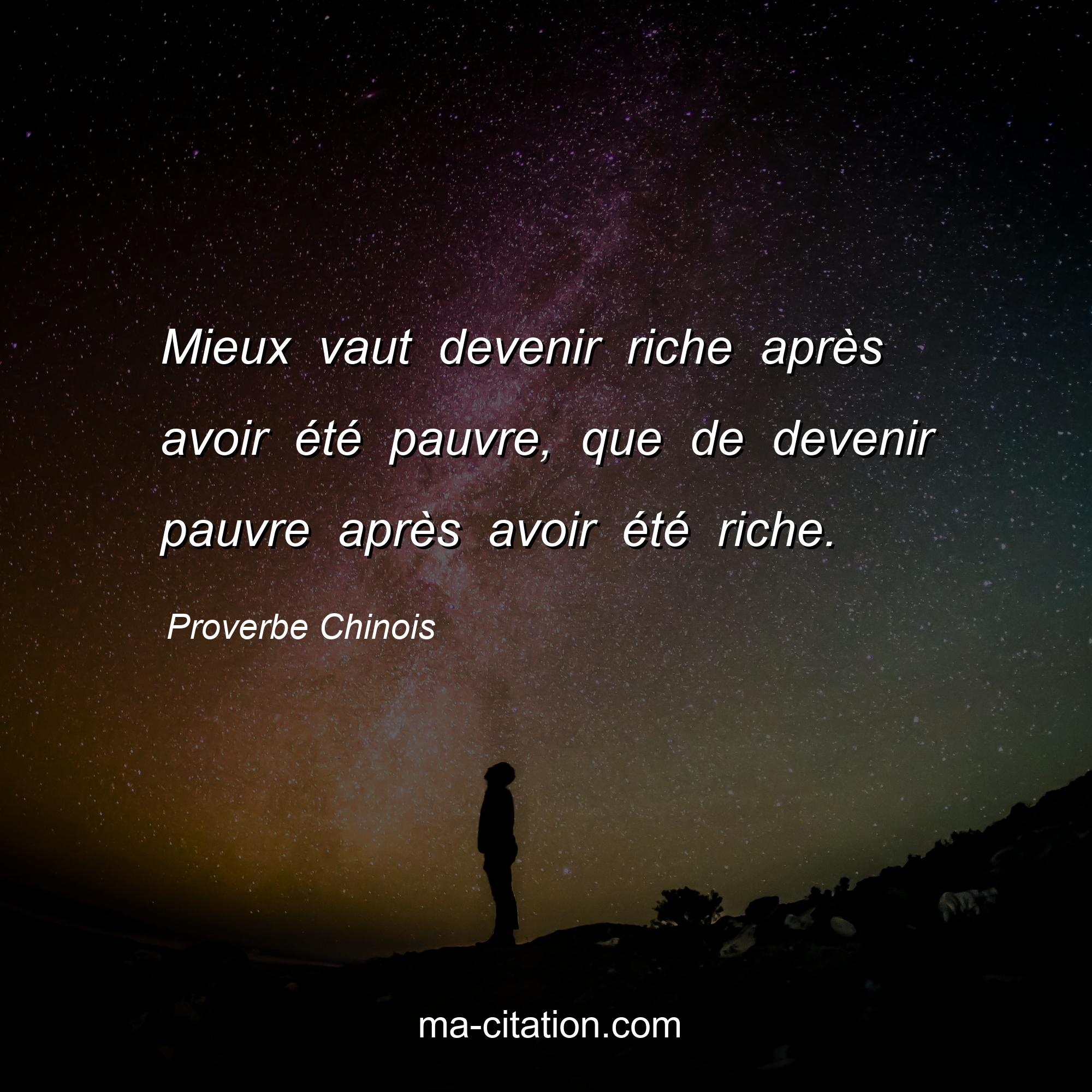 Proverbe Chinois sur la vie :Mieux vaut devenir riche après avoir été pauvre, que de devenir pauvre après avoir été riche.