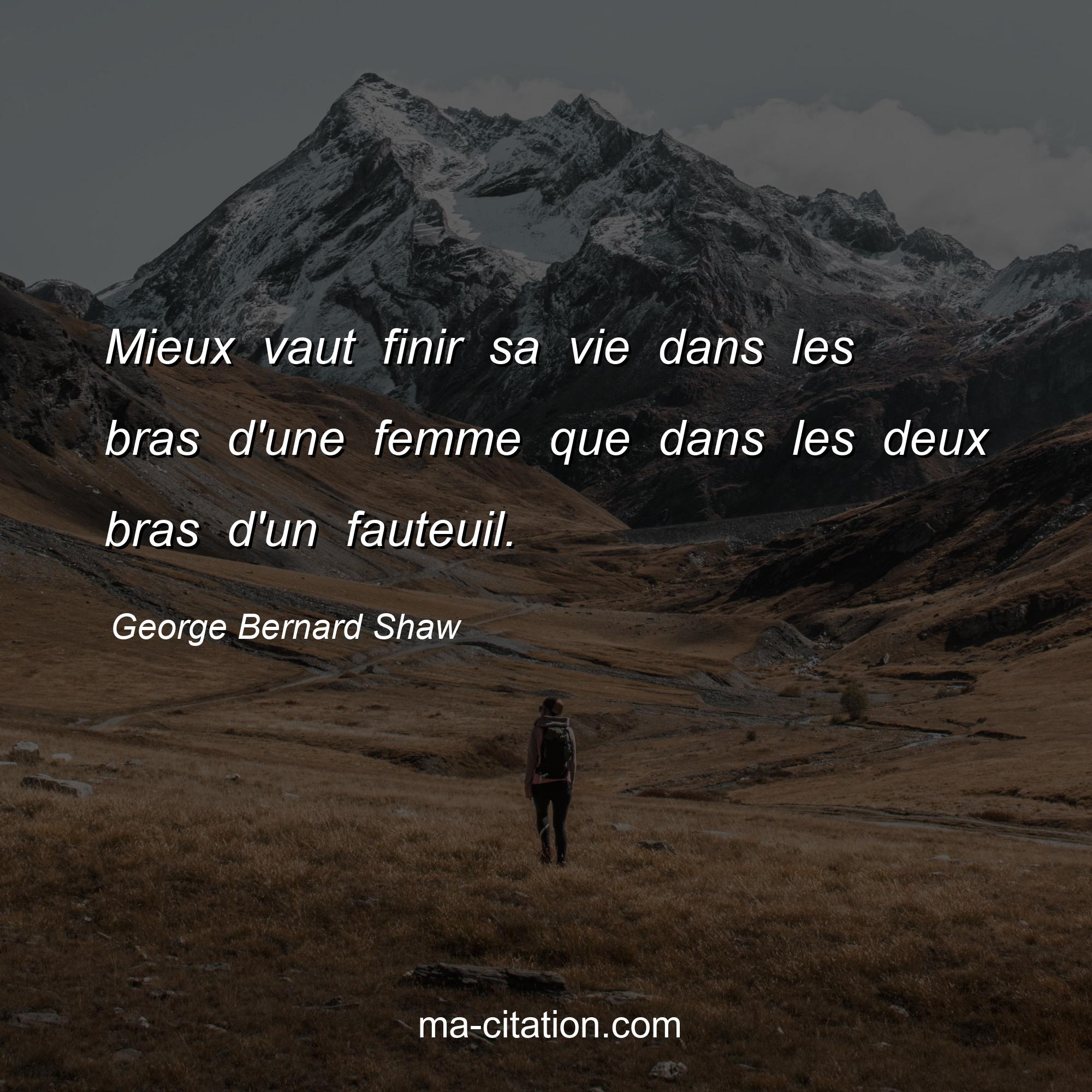 Citation sur la vie de George Bernard Shaw :Mieux vaut finir sa vie dans les bras d'une femme que dans les deux bras d'un fauteuil.