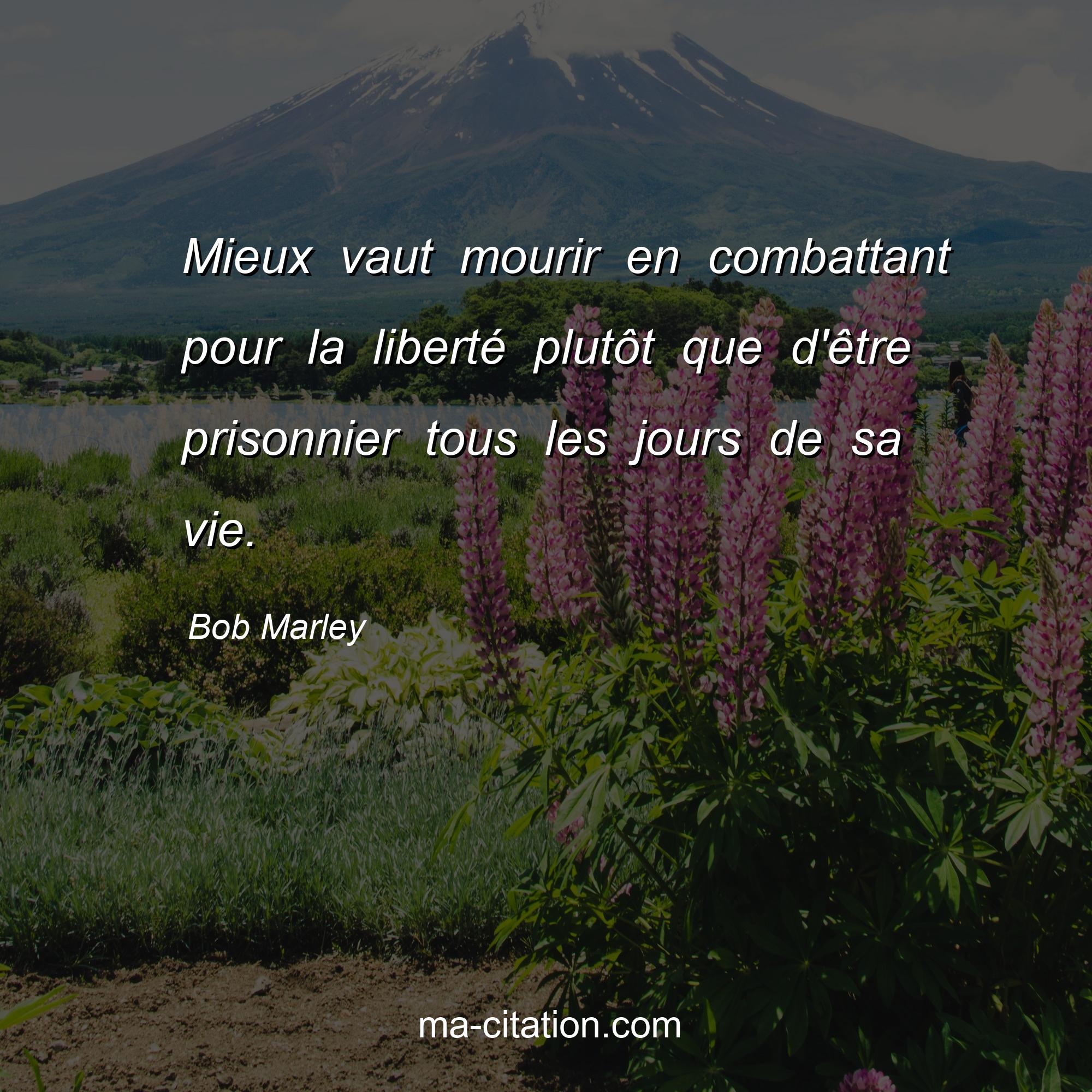 Citation sur la vie de Bob Marley :Mieux vaut mourir en combattant pour la liberté plutôt que d'être prisonnier tous les jours de sa vie.
