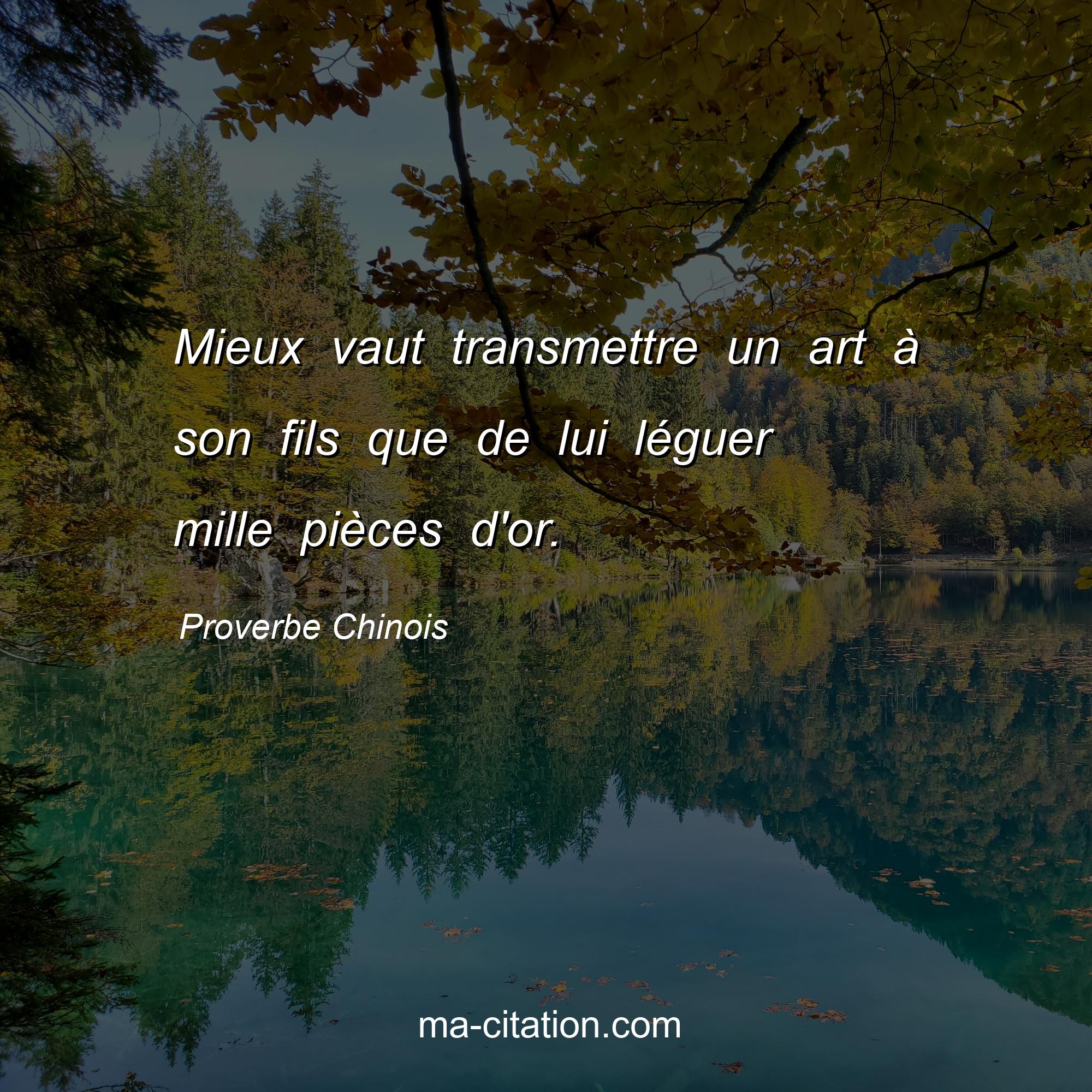 Proverbe Chinois sur la vie :Mieux vaut transmettre un art à son fils que de lui léguer mille pièces d'or.