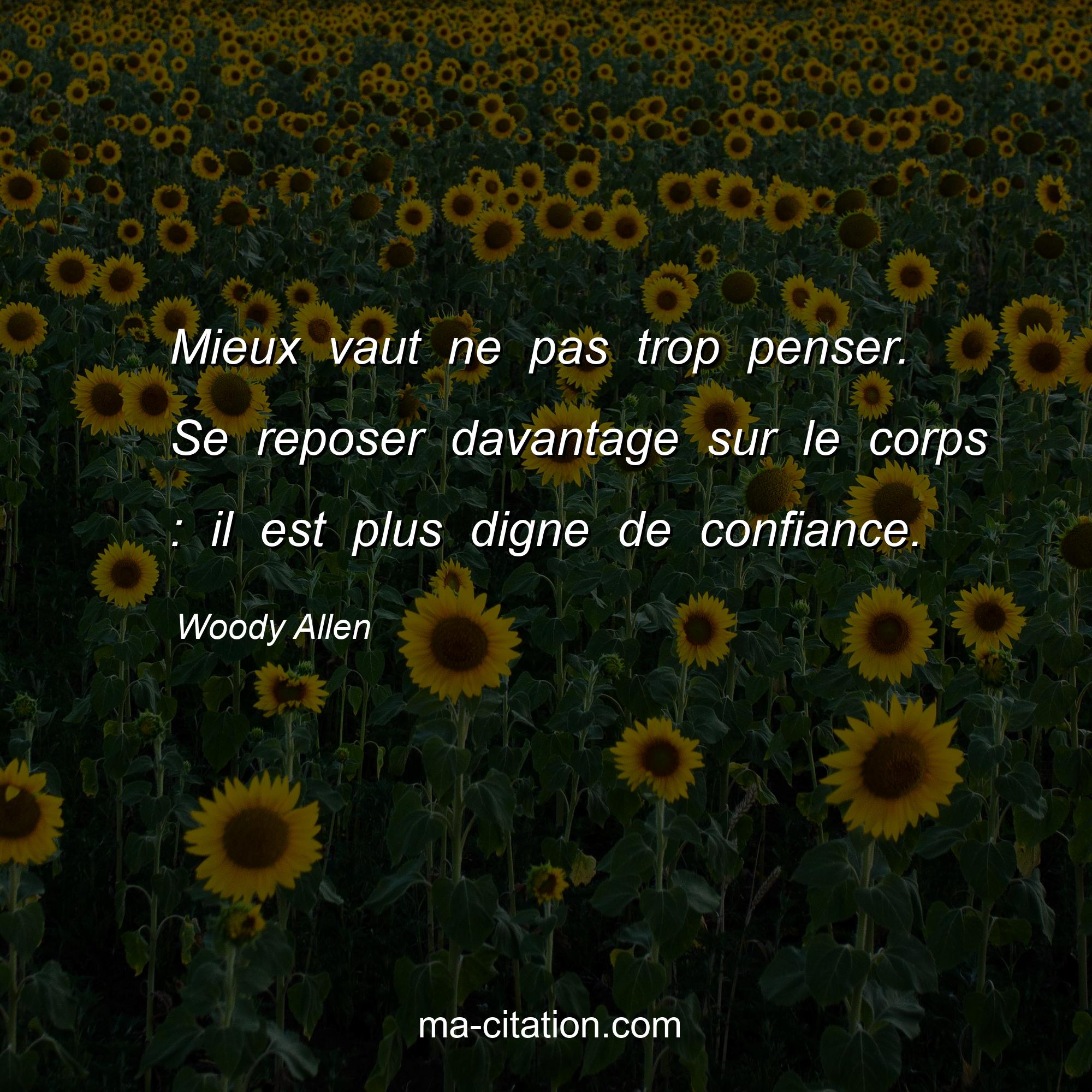 Citation sur la vie de Woody Allen :Mieux vaut ne pas trop penser. Se reposer davantage sur le corps : il est plus digne de confiance.