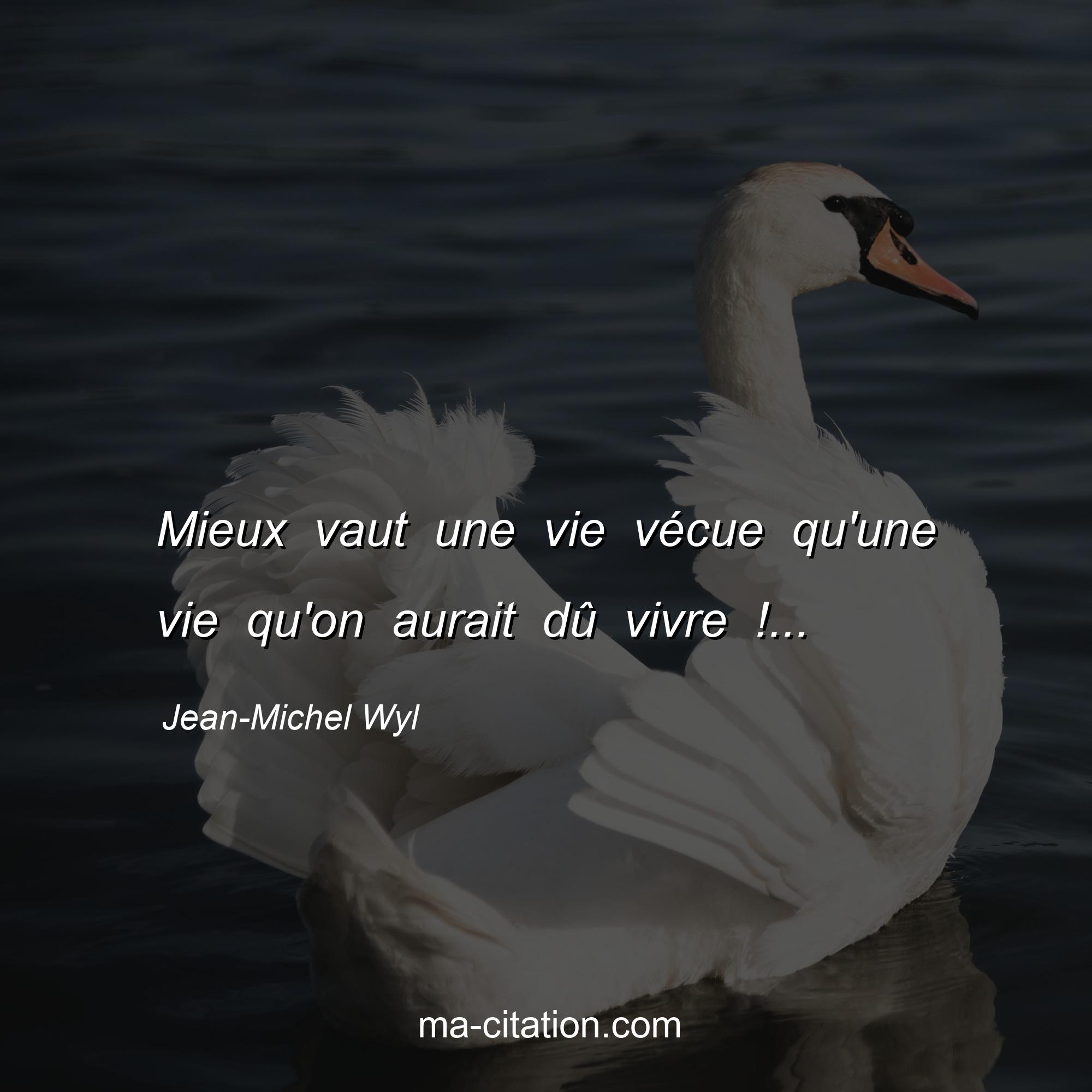 Citation sur la vie de Jean-Michel Wyl :Mieux vaut une vie vécue qu'une vie qu'on aurait dû vivre !...