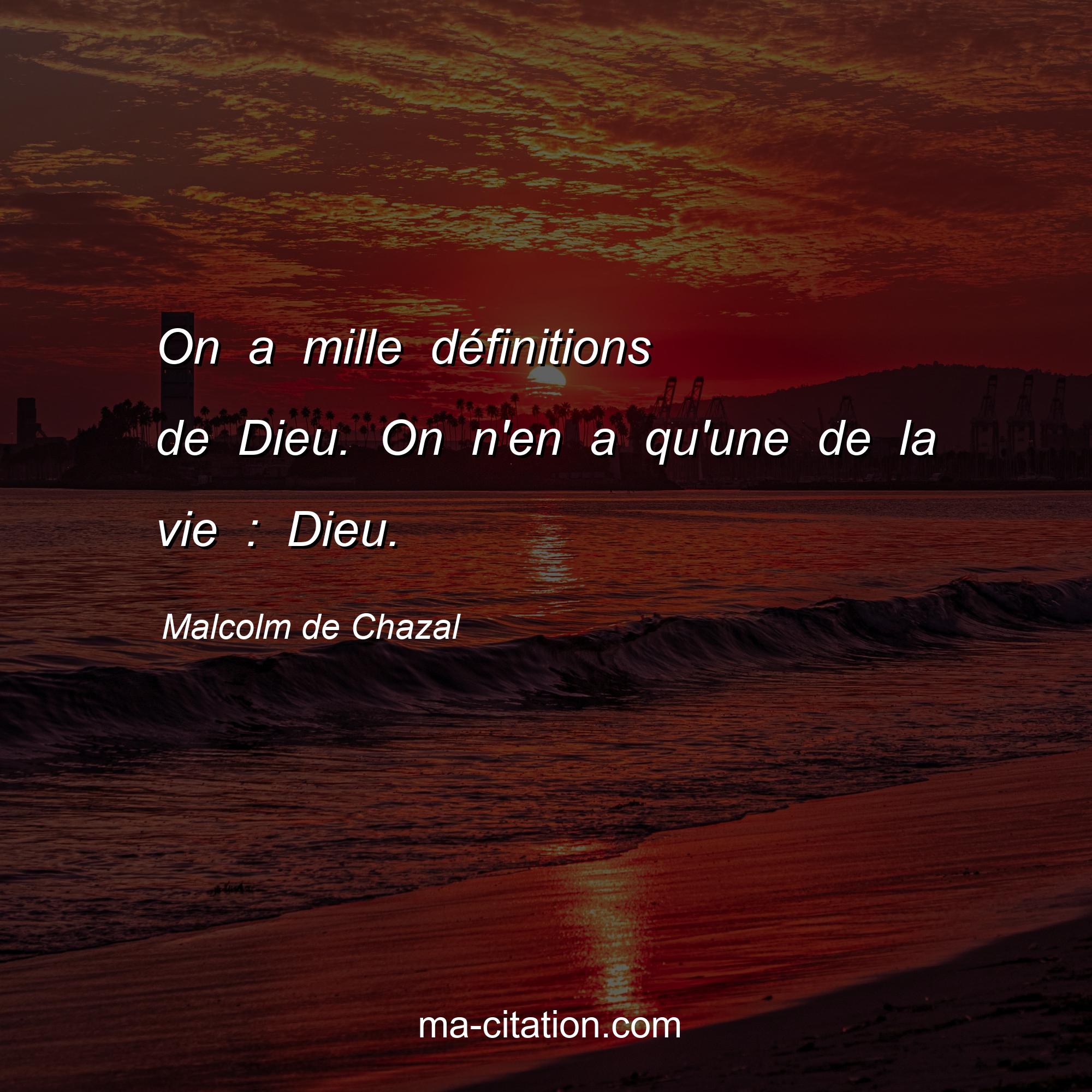 Citation sur la vie de Malcolm de Chazal :On a mille définitions de Dieu. On n'en a qu'une de la vie : Dieu.