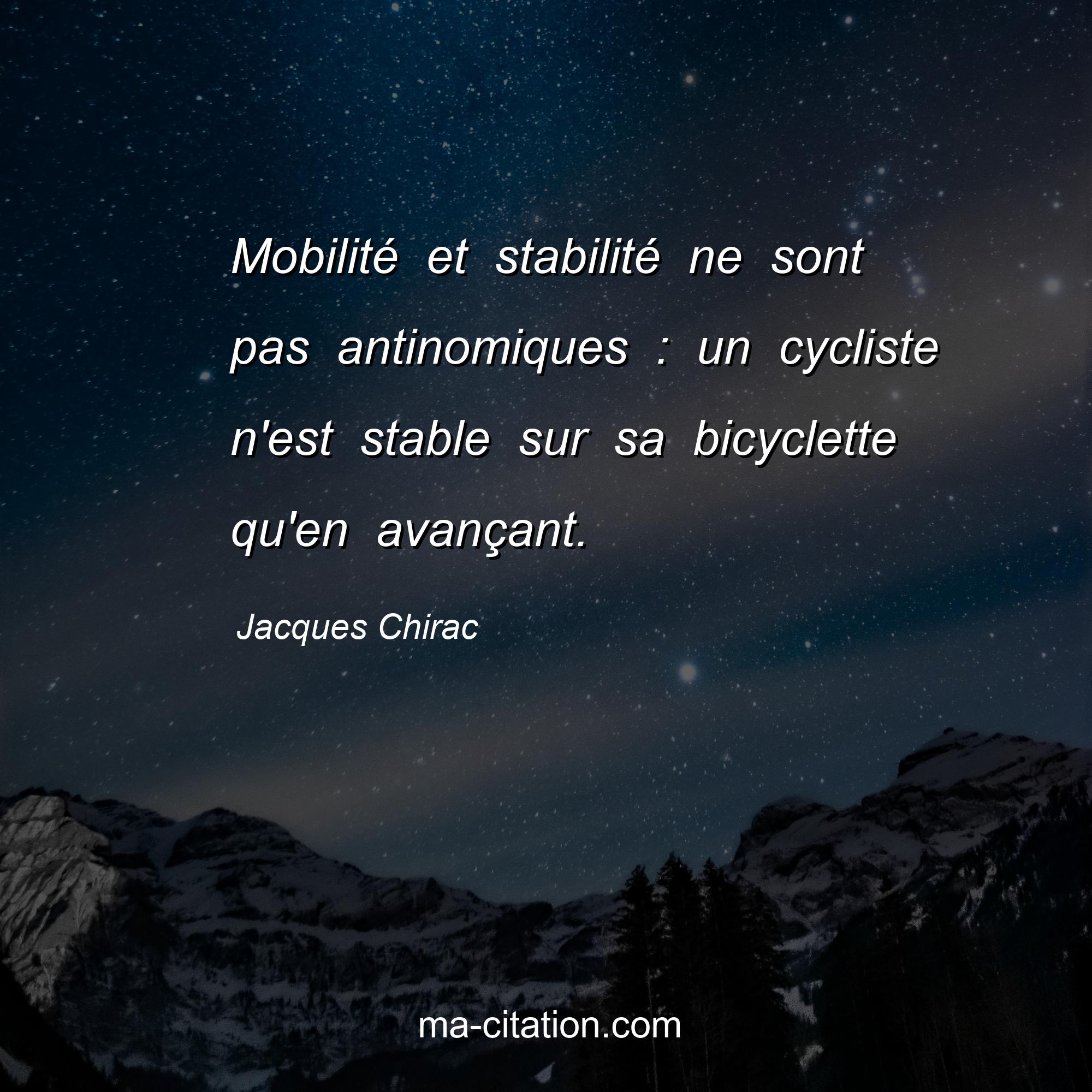 Citation sur la vie de Jacques Chirac :Mobilité et stabilité ne sont pas antinomiques : un cycliste n'est stable sur sa bicyclette qu'en avançant.