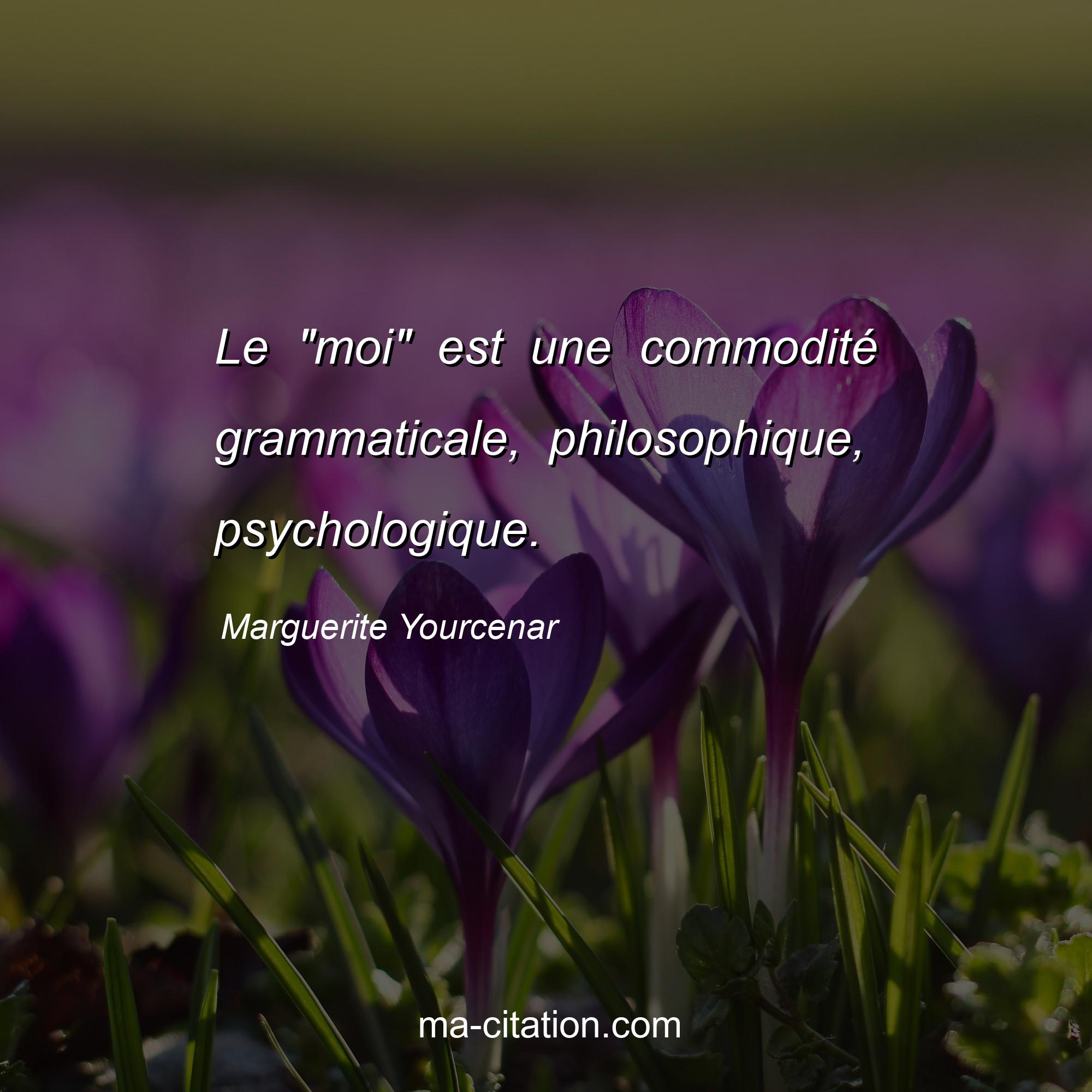 Citation sur la vie de Marguerite Yourcenar :Le "moi" est une commodité grammaticale, philosophique, psychologique.