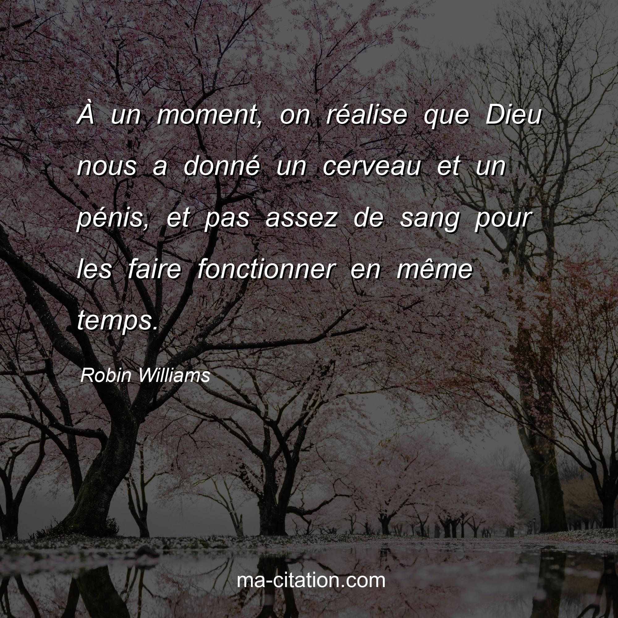 Citation sur la vie de Robin Williams :À un moment, on réalise que Dieu nous a donné un cerveau et un pénis, et pas assez de sang pour les faire fonctionner en même temps.