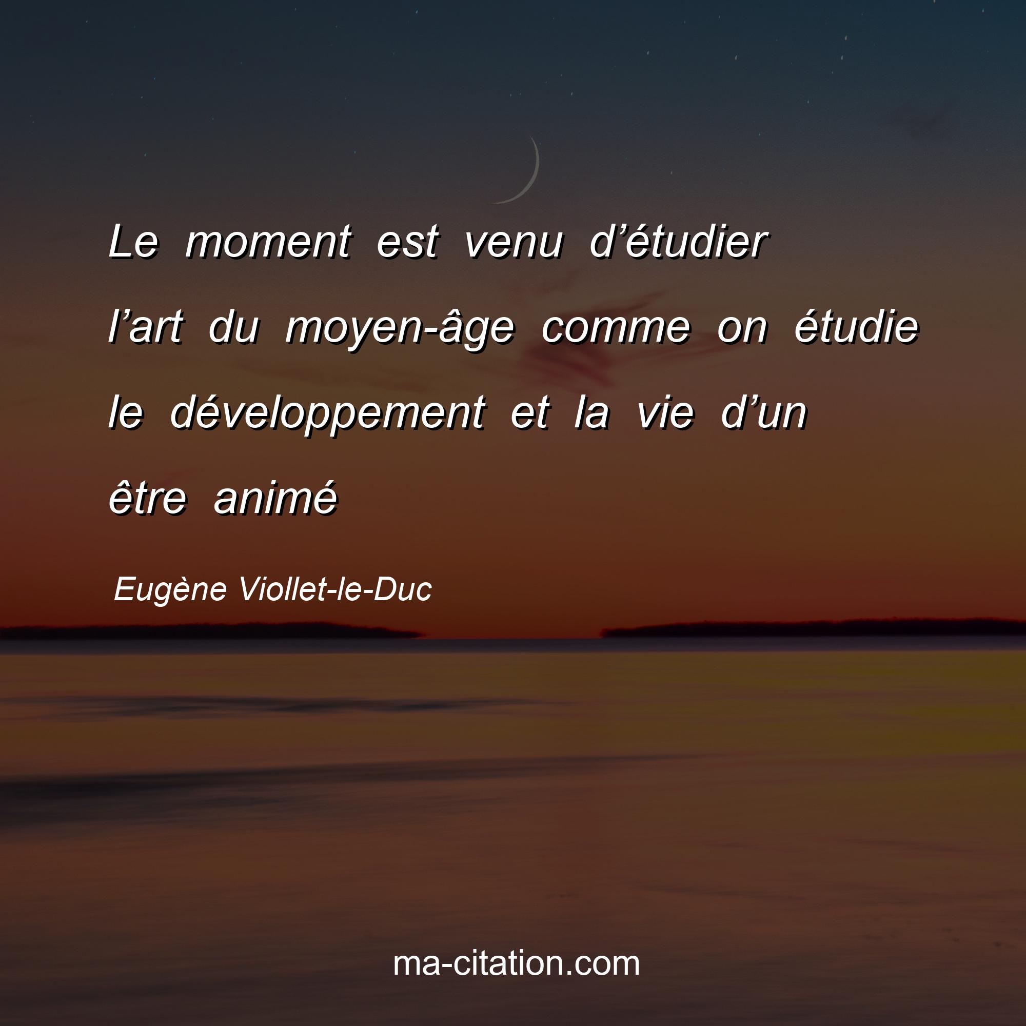 Eugène Viollet-le-Duc est l'auteur de la citation sur la vie "Le moment est venu d’étudier l’art du moyen-âge comme on étudie le développement et la vie d’un être animé".