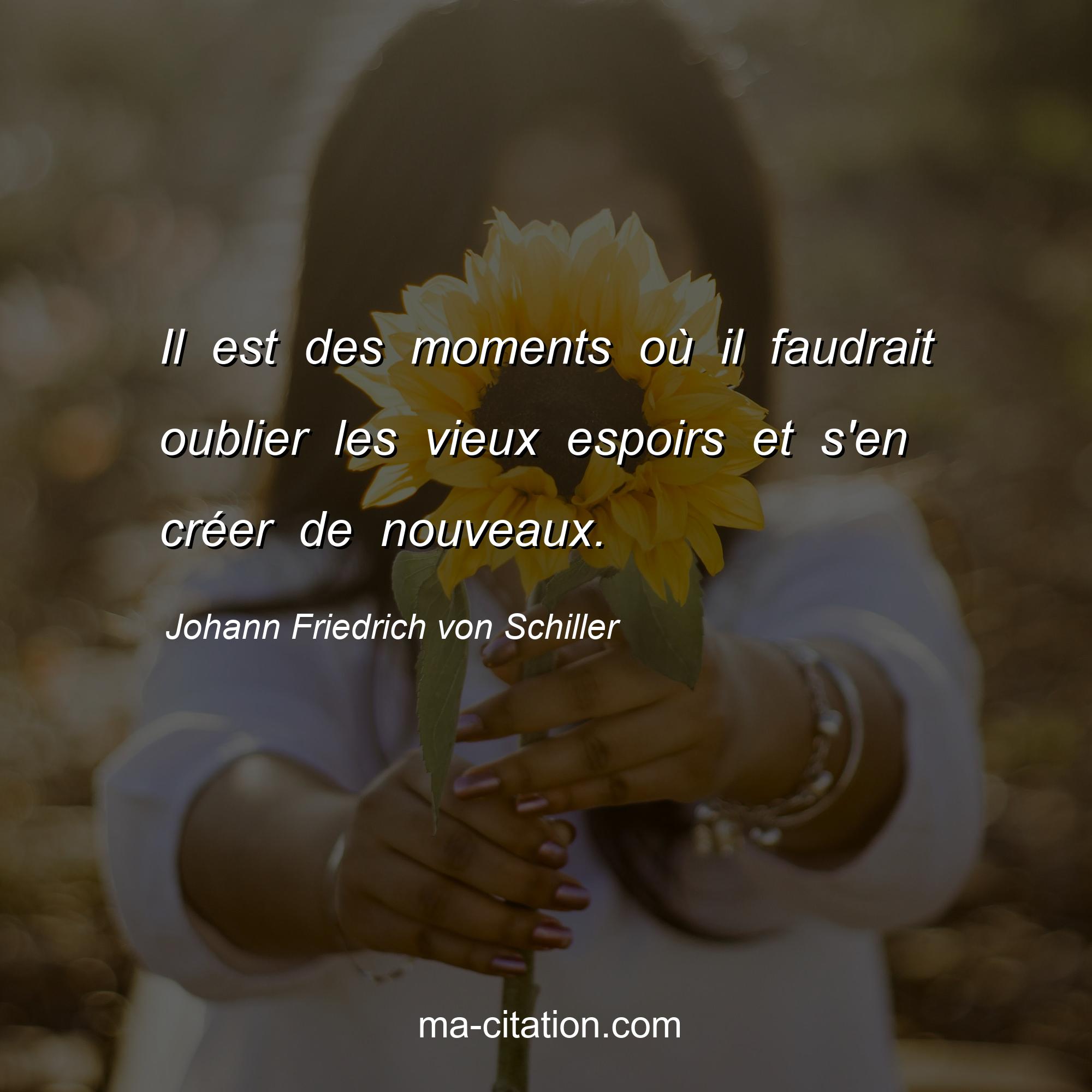 Citation sur la vie de Johann Friedrich von Schiller :Il est des moments où il faudrait oublier les vieux espoirs et s'en créer de nouveaux.
