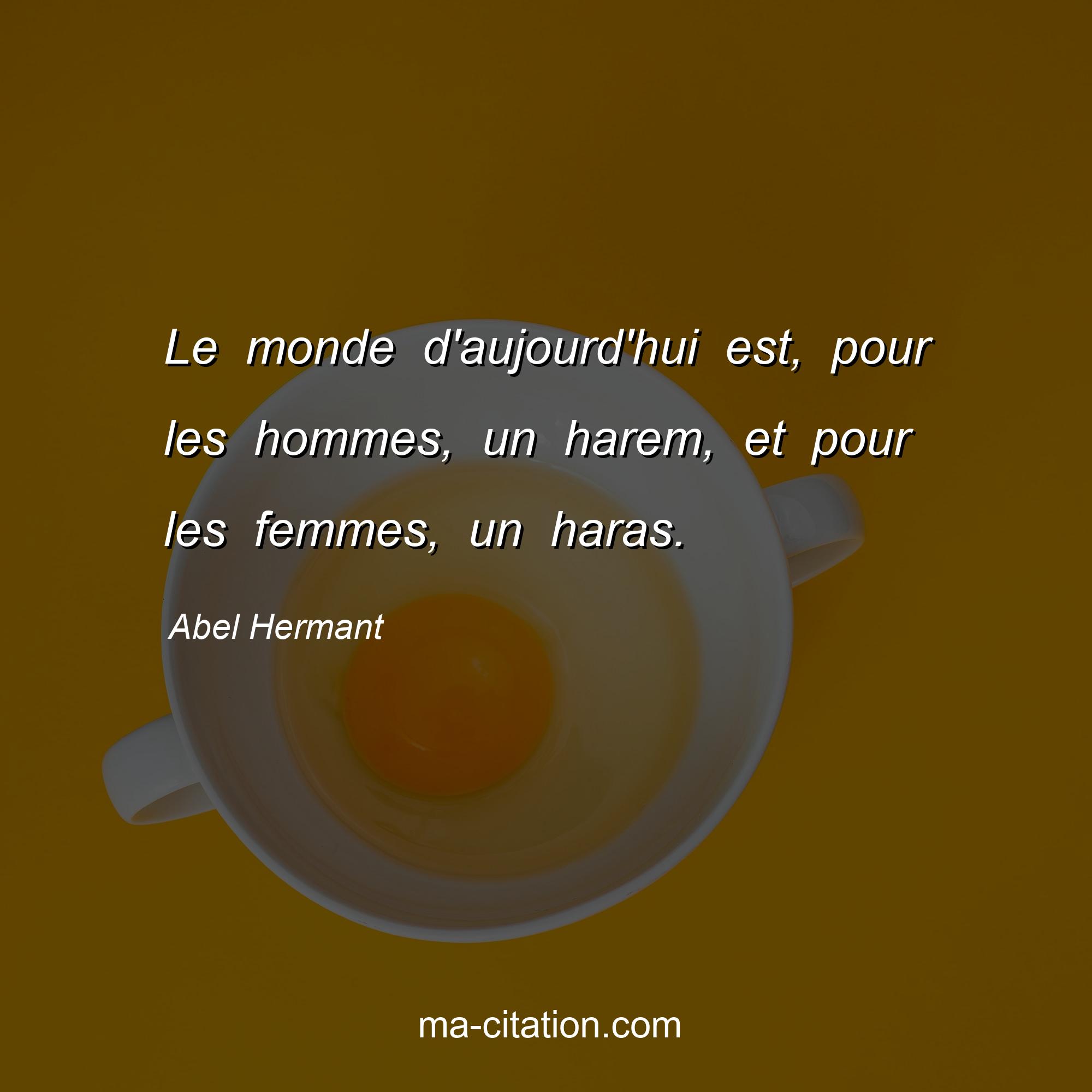 Citation sur la vie d'Abel Hermant :Le monde d'aujourd'hui est, pour les hommes, un harem, et pour les femmes, un haras.