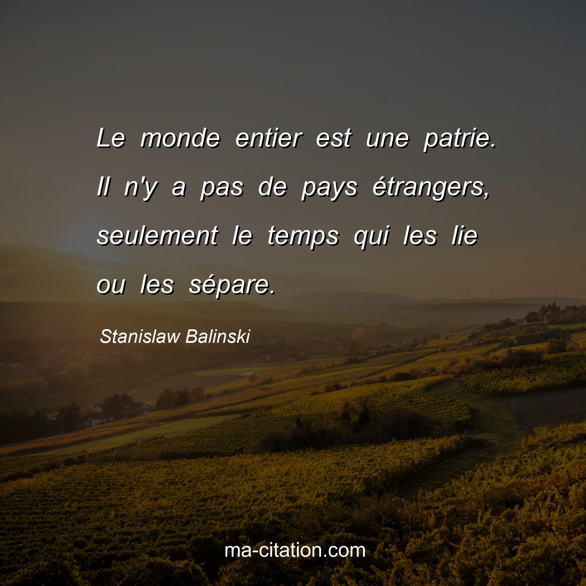 Citation sur la vie de Stanislaw Balinski :Le monde entier est une patrie. Il n'y a pas de pays étrangers, seulement le temps qui les lie ou les sépare.