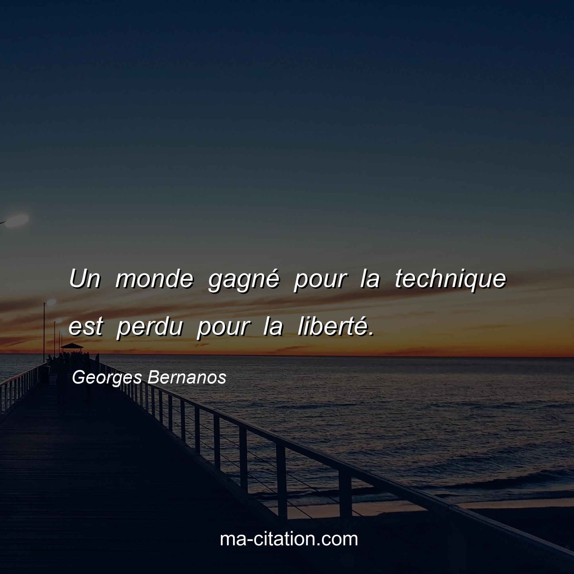 Citation sur la vie de Georges Bernanos :Un monde gagné pour la technique est perdu pour la liberté.