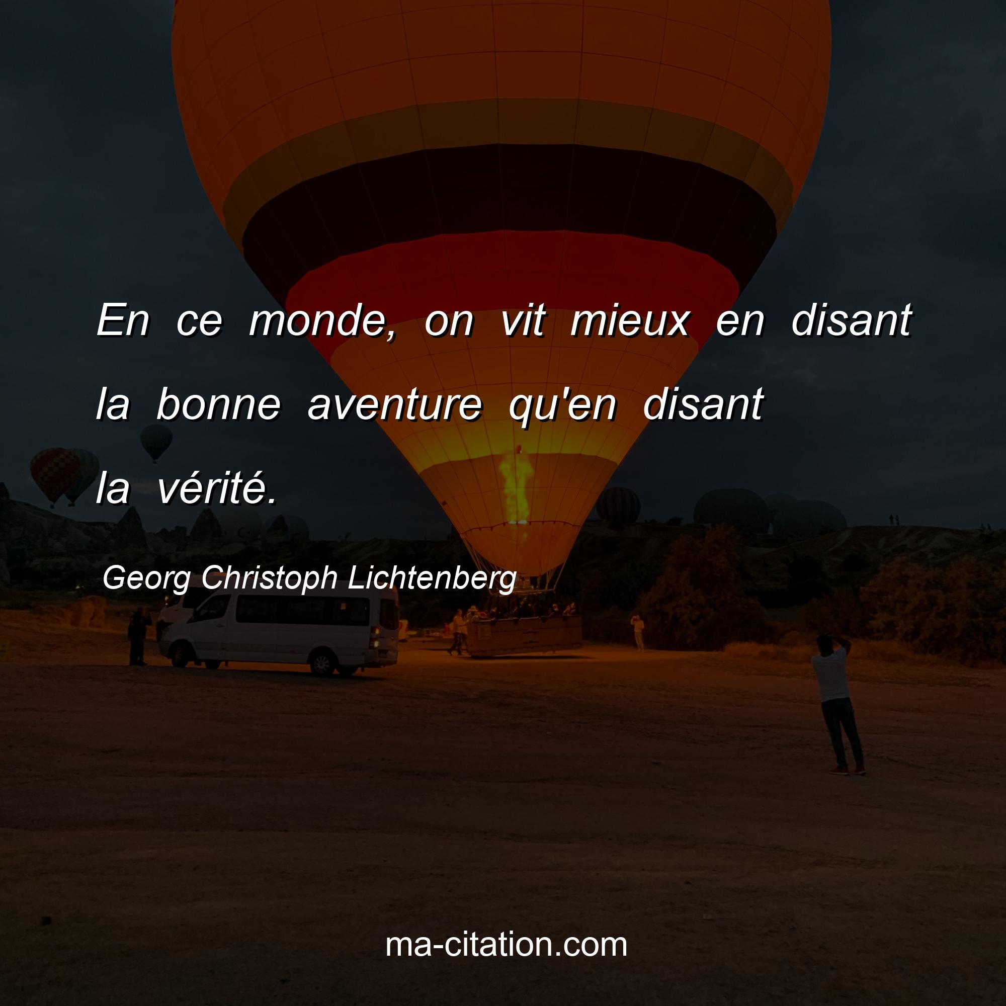 Citation sur la vie de Georg Christoph Lichtenberg :En ce monde, on vit mieux en disant la bonne aventure qu'en disant la vérité.