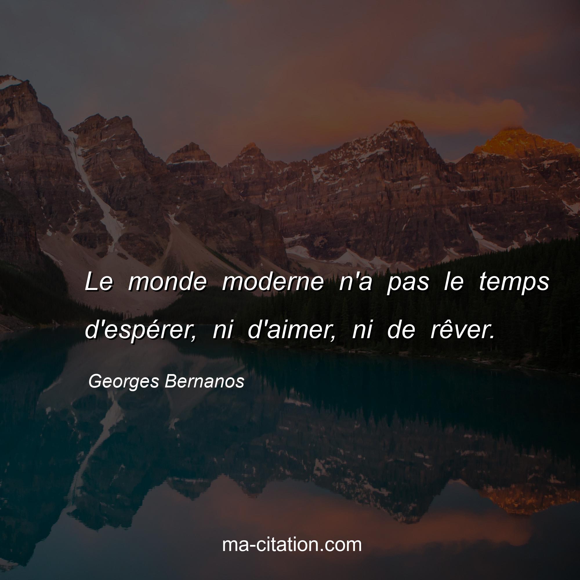 Citation sur la vie de Georges Bernanos :Le monde moderne n'a pas le temps d'espérer, ni d'aimer, ni de rêver.